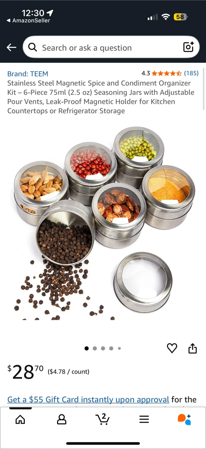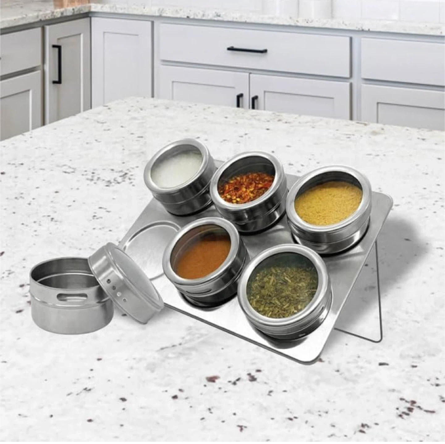 Magnetic Spice Tins 6-pack Stainless Steel Set