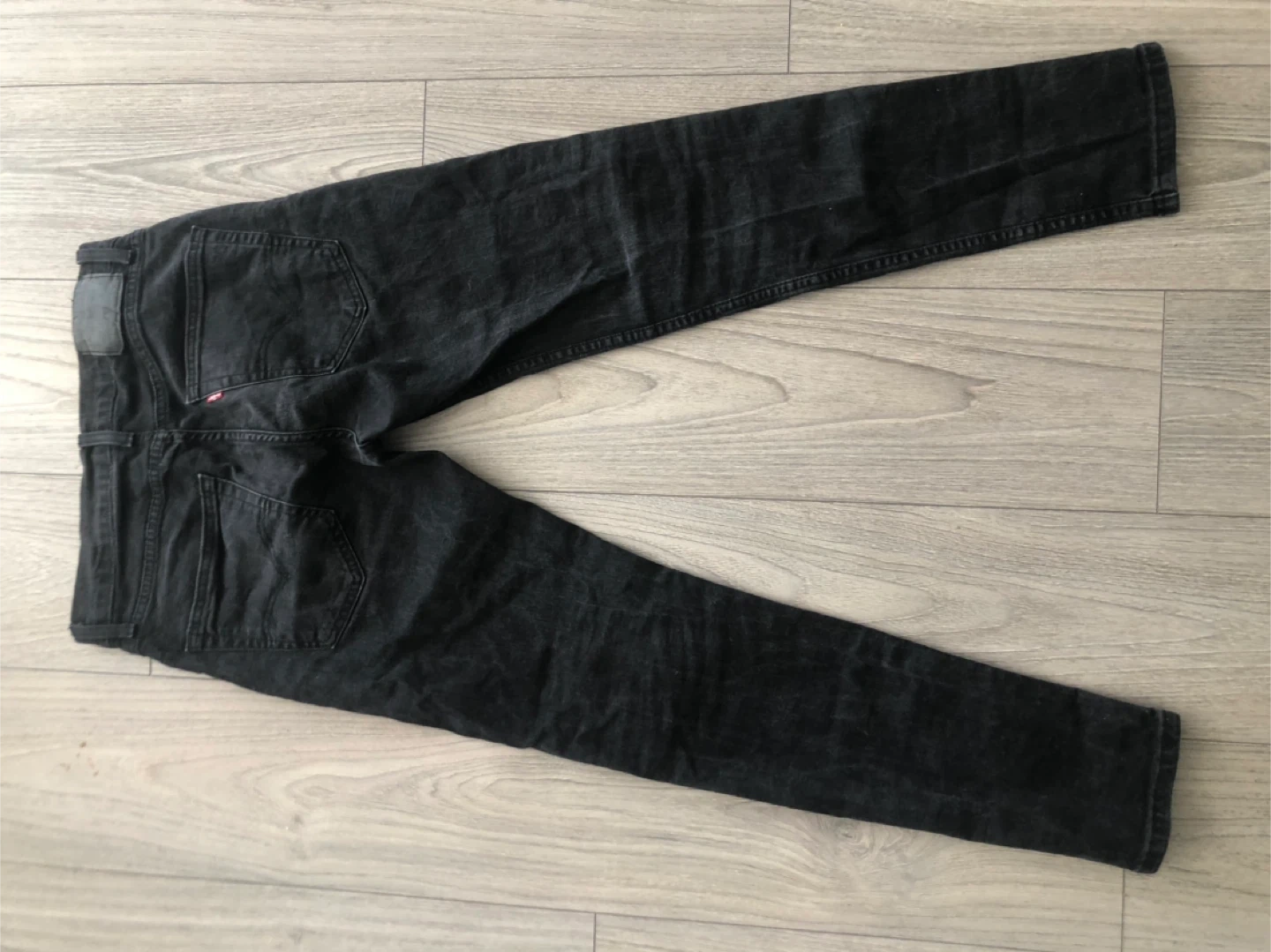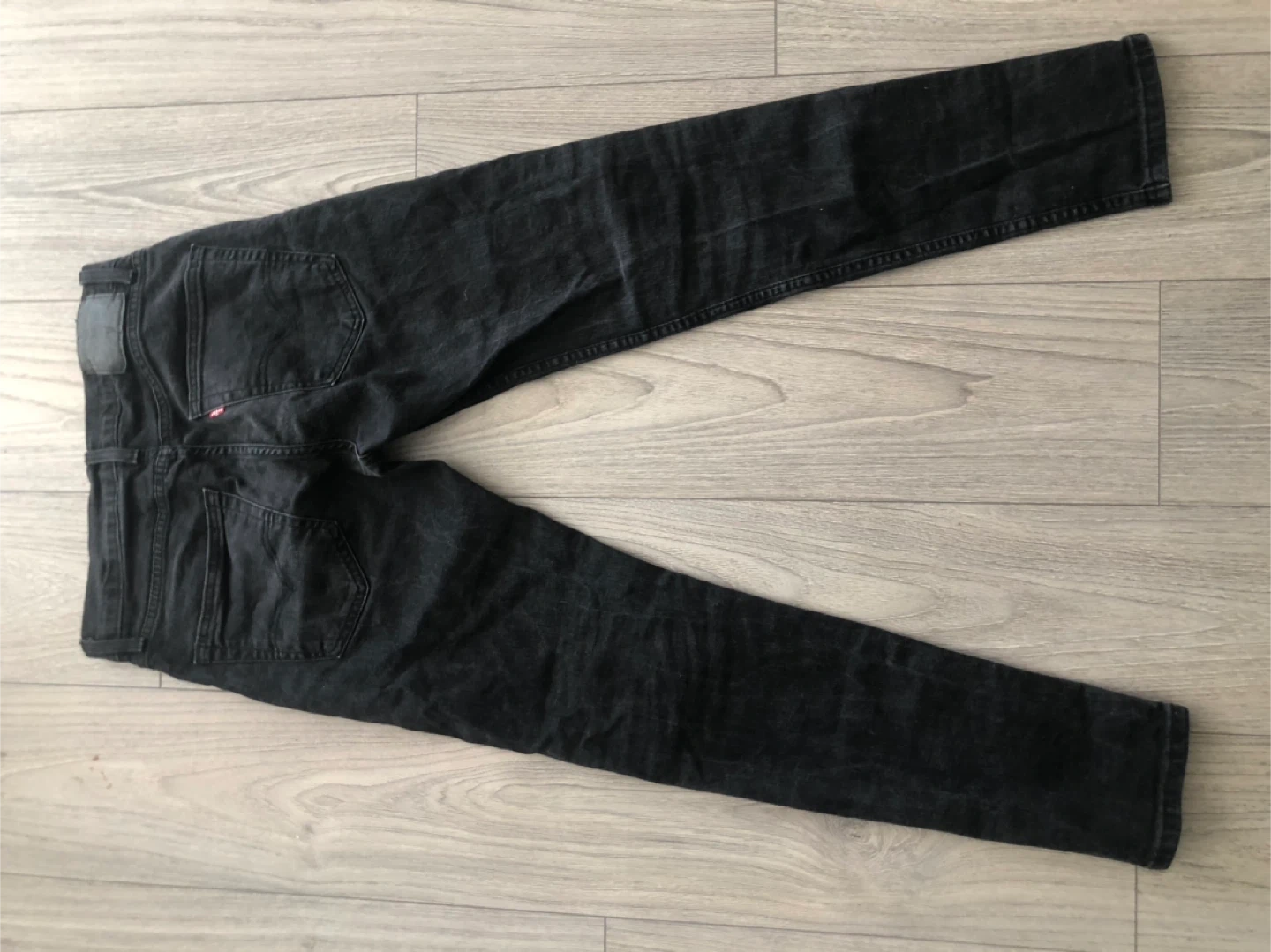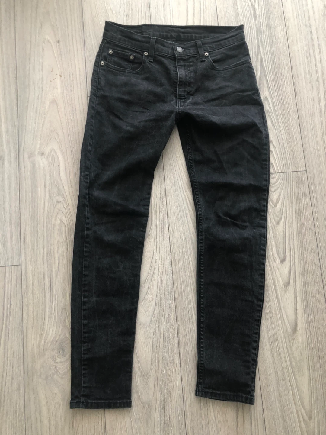 Levi's 512 Slim Taper jeans in a black wash. These are a men's size W30 L32. They're made of denim material. These jeans would be useful for everyday wear.