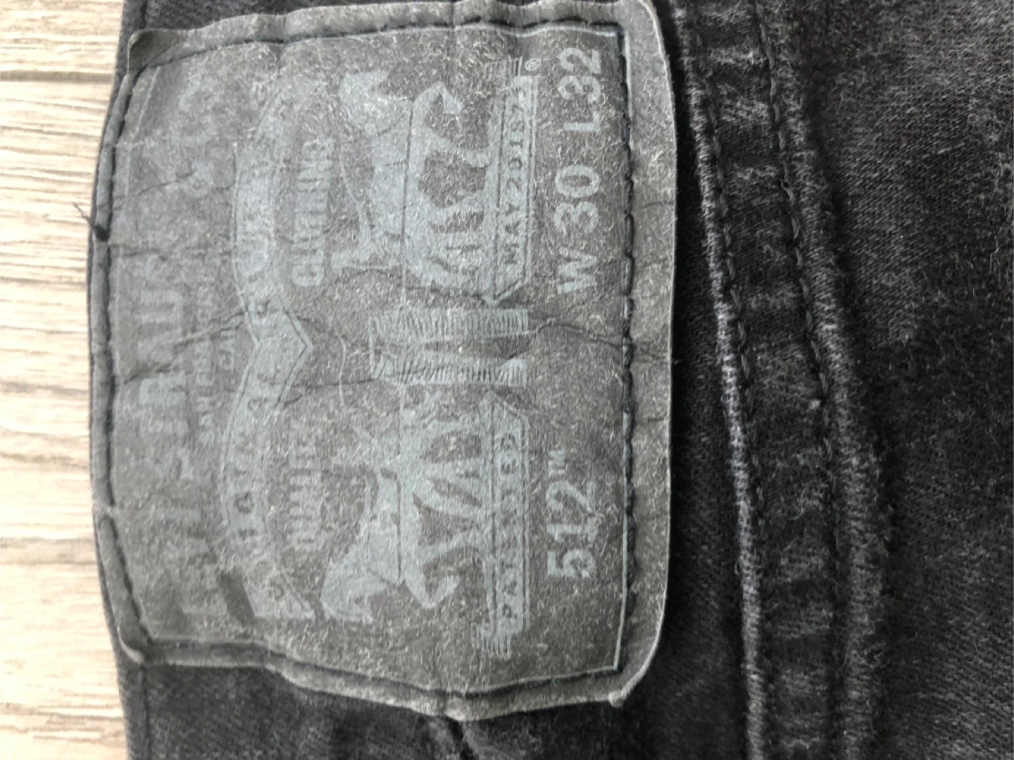 Levi's 512 Slim Taper jeans in a black wash. These are a men's size W30 L32. They're made of denim material. These jeans would be useful for everyday wear.