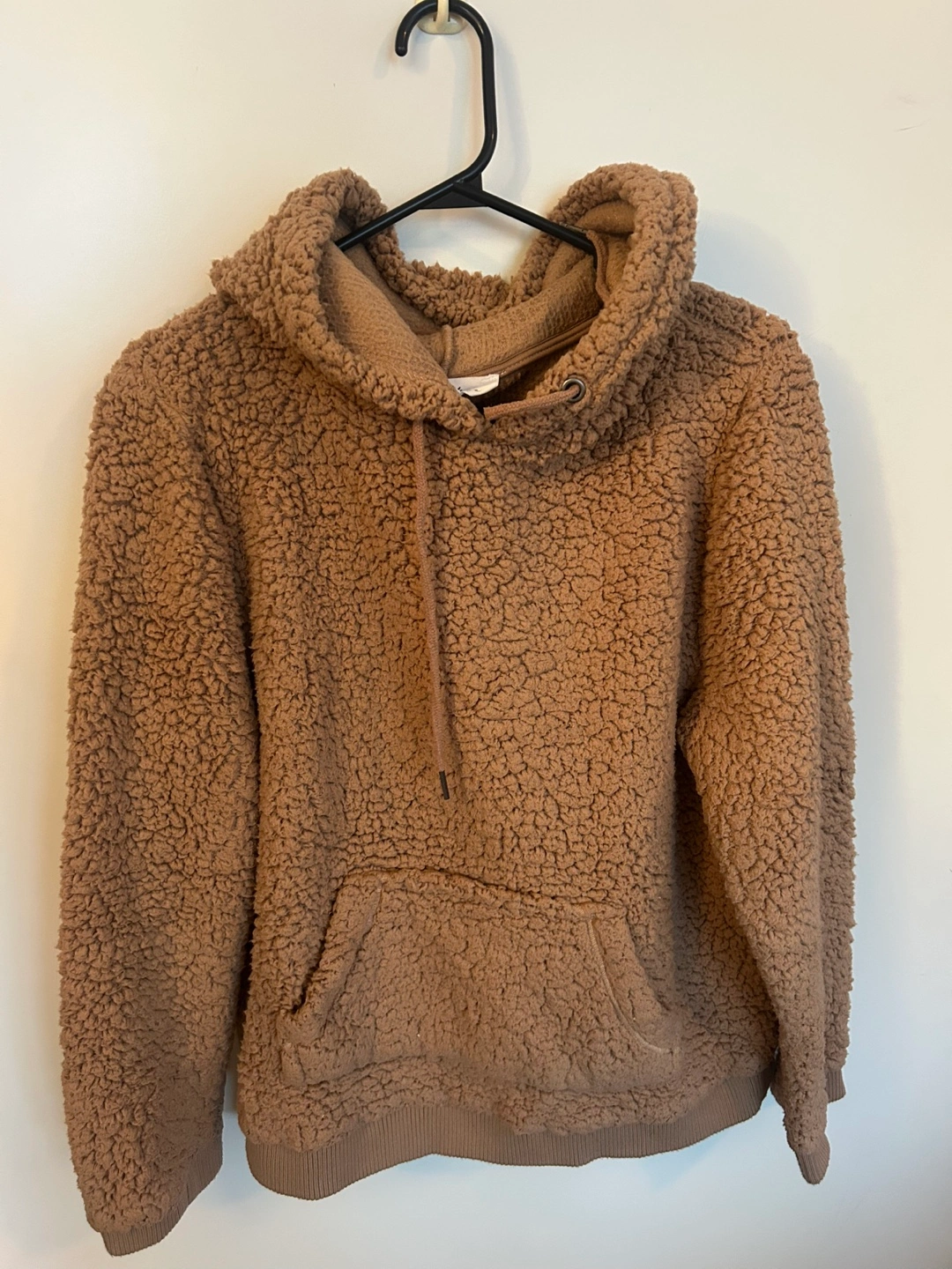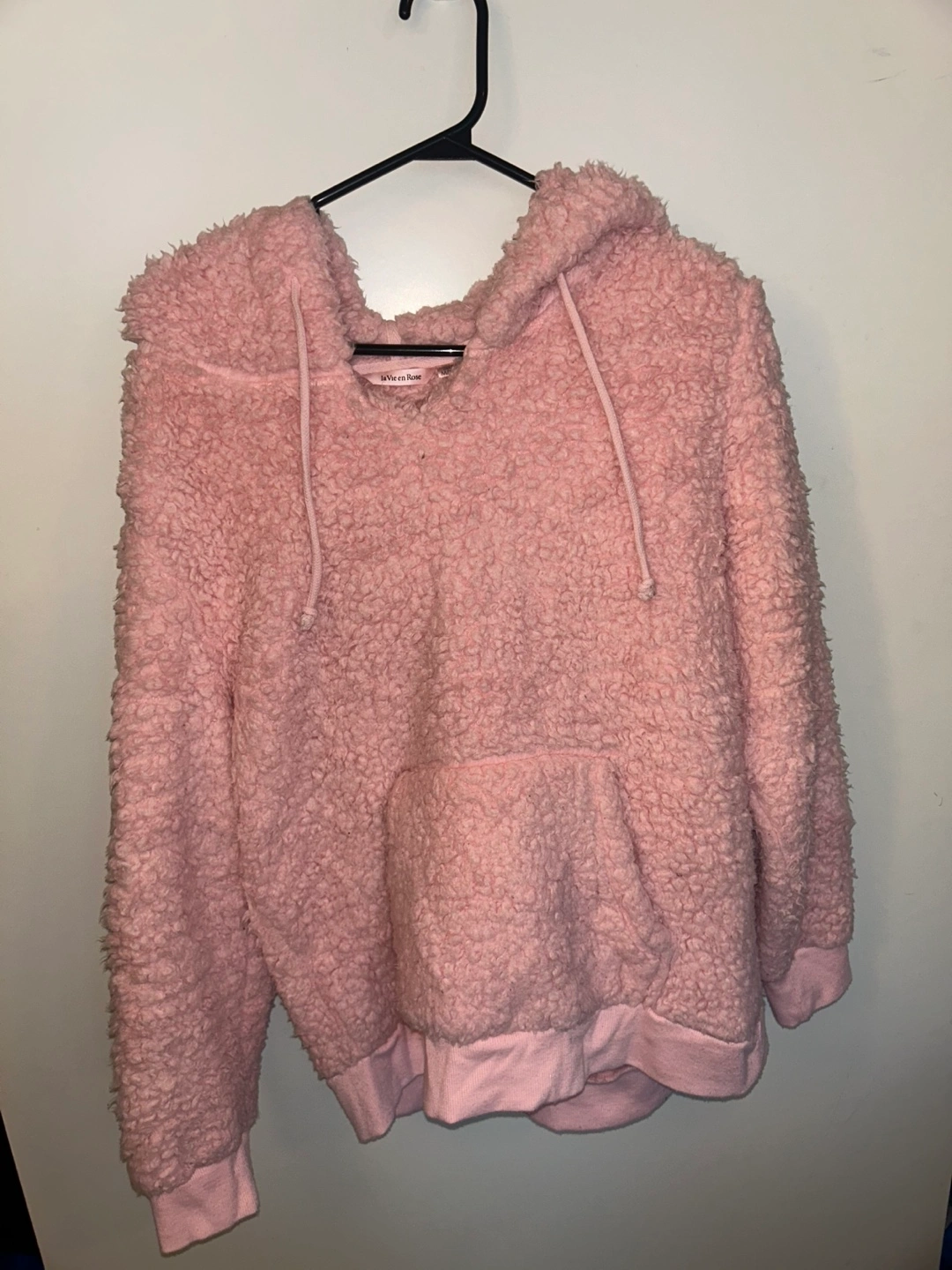 Pink fuzzy hoodie: La Vie En Rose, Size Medium.
