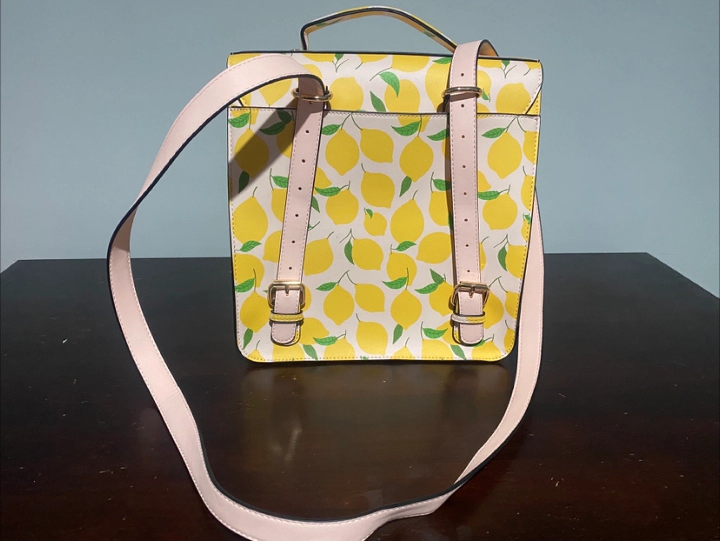 Add a pop of sunshine to your wardrobe with this adorable Poppy & Peonies lemon print satchel. This stylish bag features a vibrant lemon pattern, perfect for adding a fresh, fun touch to any outfit. It's ideal for carrying your essentials with a unique flair!