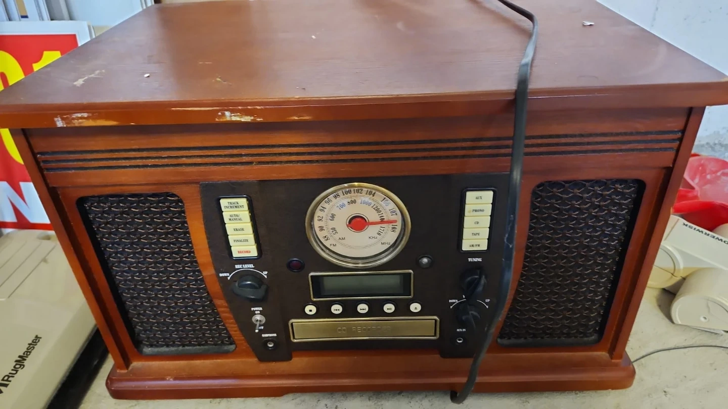 Selling a vintage-style stereo system with a wood finish. It has a classic look and includes features like AM/FM radio, CD, and tape player. Perfect for adding a retro touch to your space!