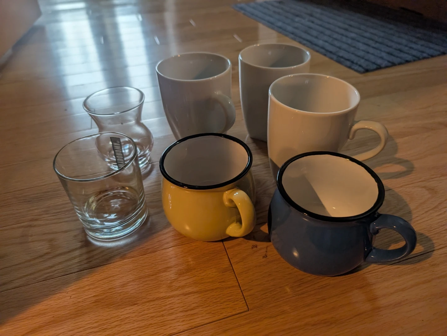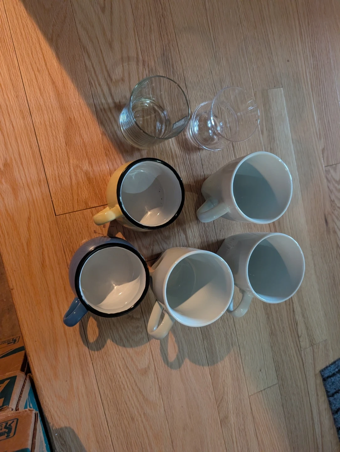 Buy & SellSet of 5 Mugs and 2 GlassesSet of 5 Mugs and 2 Glasses$5This set includes five ceramic mugs, three in white, one yellow, and one blue. It also comes with two small glass.ConditionGoodWHERE TO MEETCypress Falls ParkView MapSELLERverifiedMiaWest Vancouver57746 reviews0 chats·0 favorites·1 viewsSEND CHAT TO SELLERHi Mia! I’m interested in your listing.Hi Mia! I’m interested in your listing.Get the Karrot app to chatSign In to chat