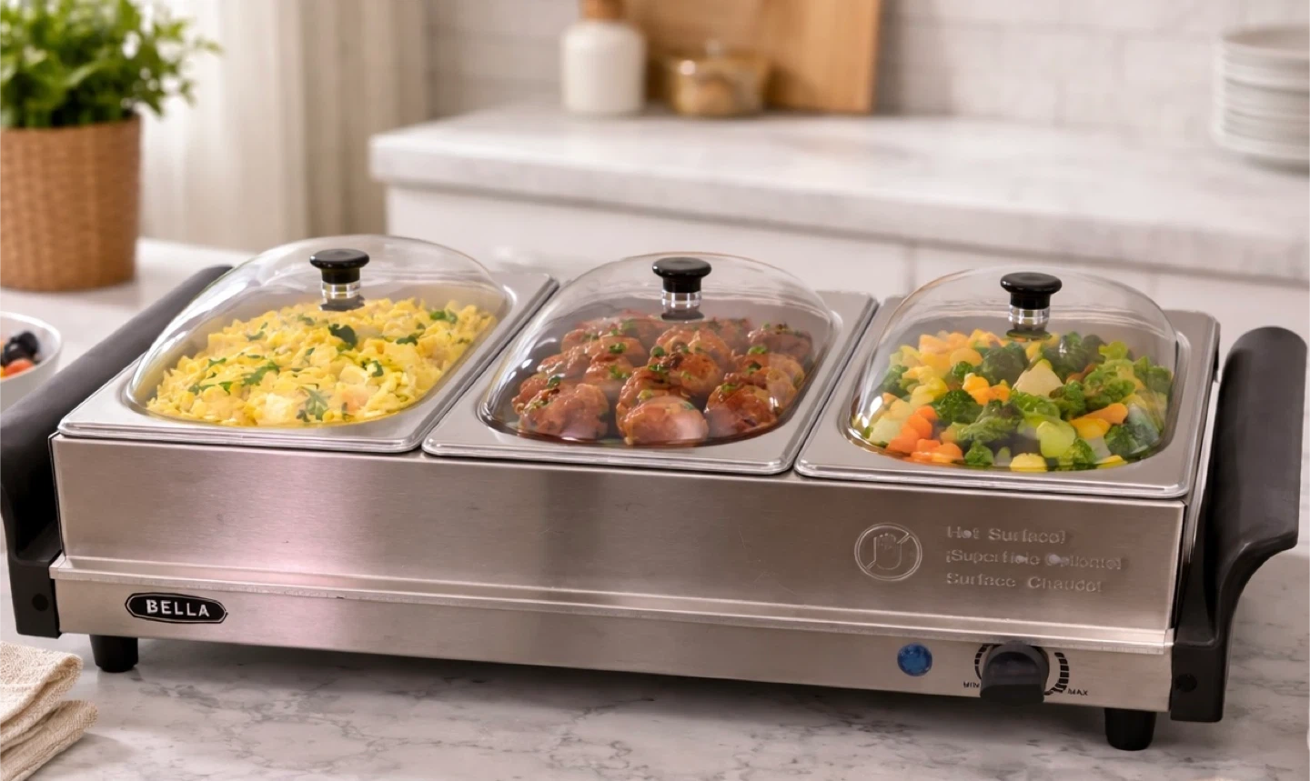 BELLA Triple Buffet Server and Warming Tray