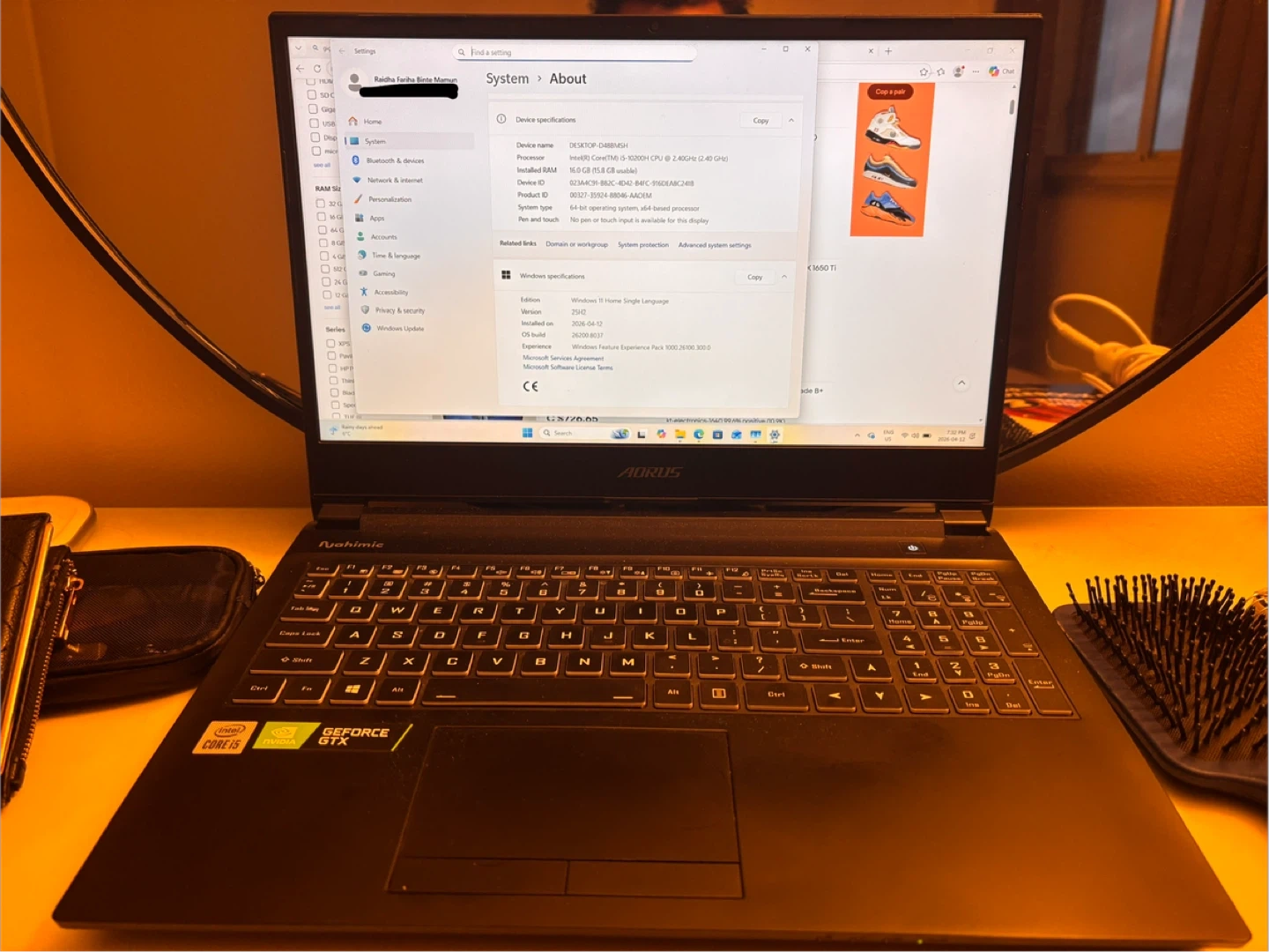 Selling my Gigabyte Aorus 5 laptop (2020). Still runs super smooth and fast — perfect for school, work, and light gaming 🎮