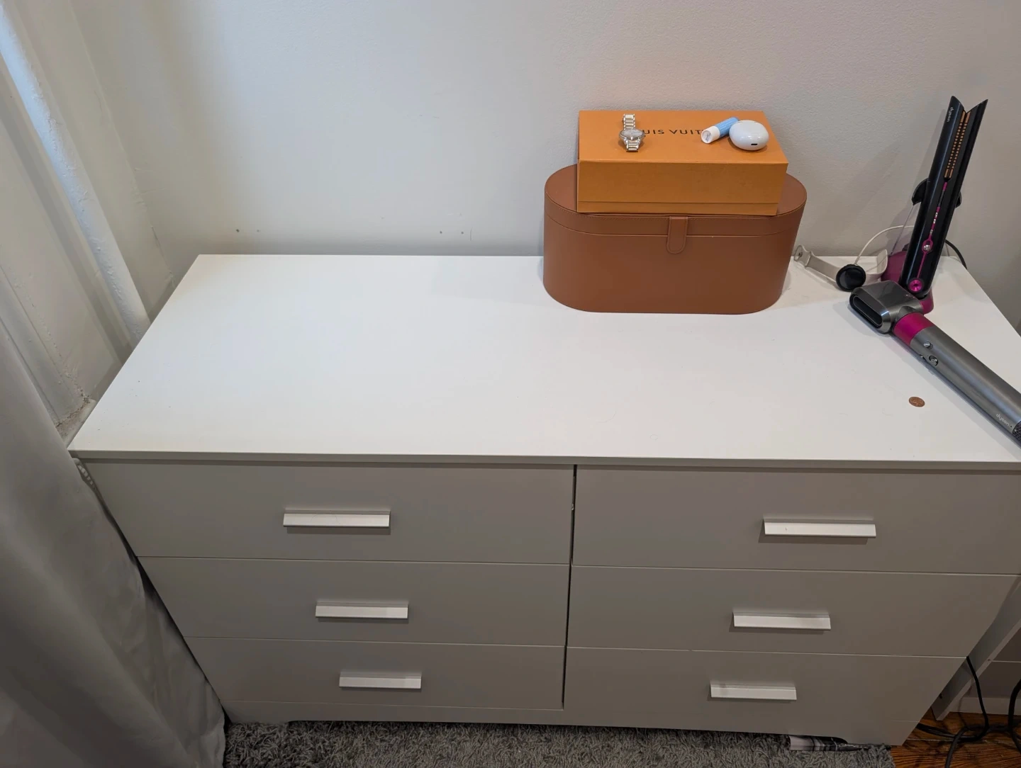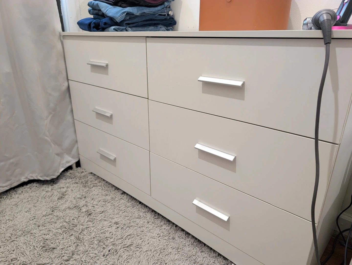 Buy & SellWhite 6-Drawer DresserWhite 6-Drawer Dresser$97This is a white dresser with six drawers. It's a clean design with silver handles. Plenty of storage space for clothes or linens!Dimensions51x19x31WHERE TO MEETCheck LocationView MapSELLERverifiedDanieleWindsor Terrace883 reviews4 chats·5 favorites·263 viewsSEND CHAT TO SELLERHi Daniele! I’m interested in your listing.Hi Daniele! I’m interested in your listing.Get the Karrot app to chatSign In to chat