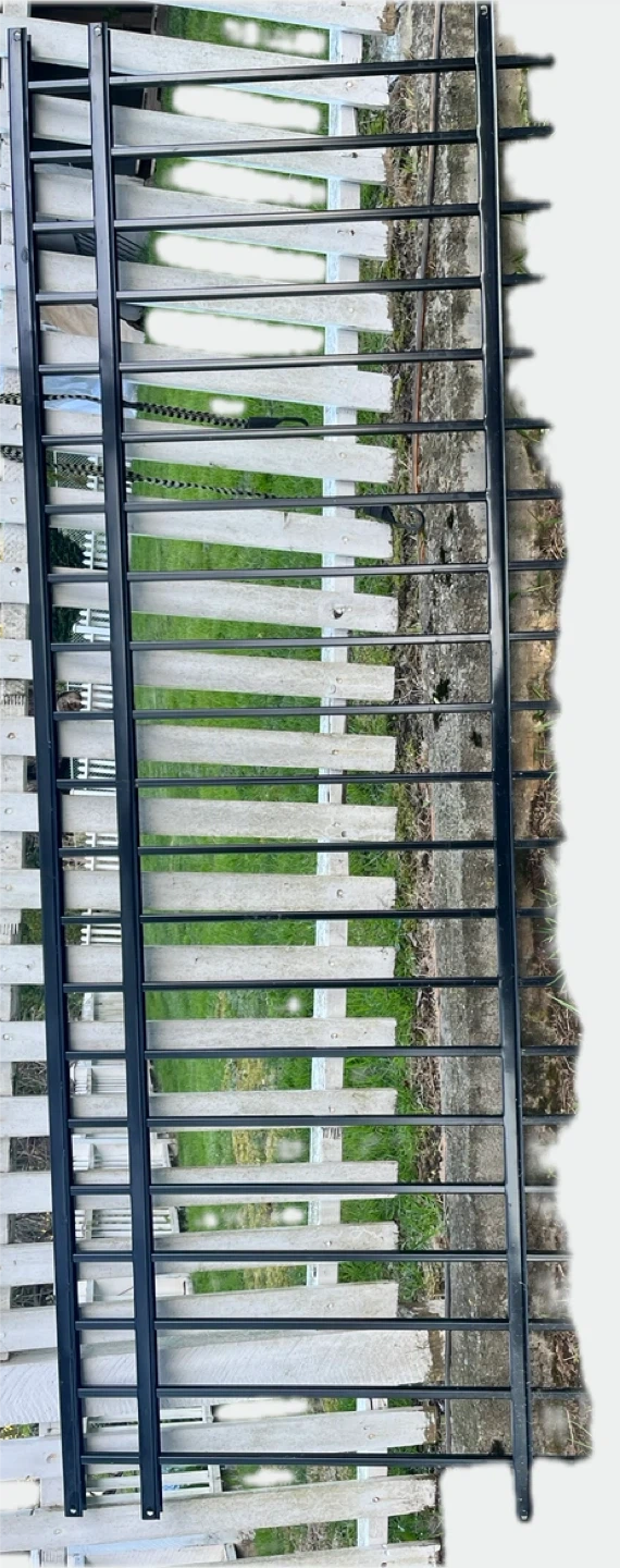 High end, *sturdy* fence/🥕garden🥕 panels forged with quality, black metal. Can be used alone (imagine a modern day white picket fence that will never create stress due to wood rot!) , stack them on top of cement/concrete blocks for even higher levels of security plus style, secure a garden pathway or update the entrance of your home! MSG for dimensions and number of panels needed :)