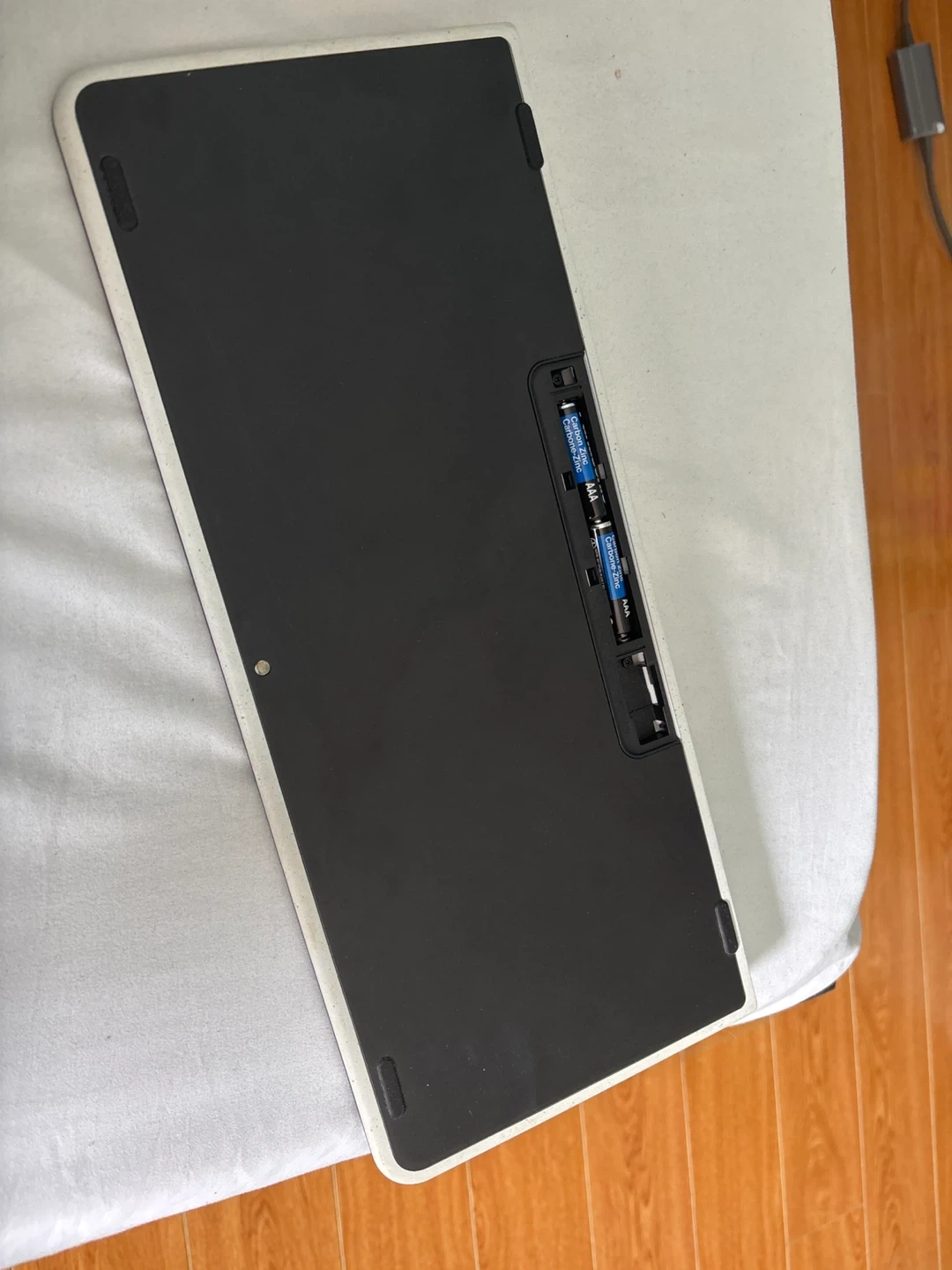 This is a Logitech wireless keyboard. It's powered by AAA batteries and connects wirelessly. It has a sleek black design with round keys. Missing the wireless dongle and back cover. Bluetooth still works.