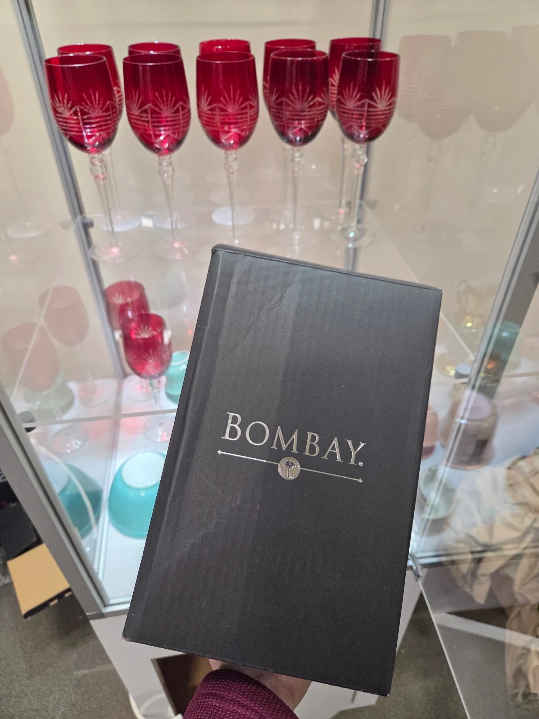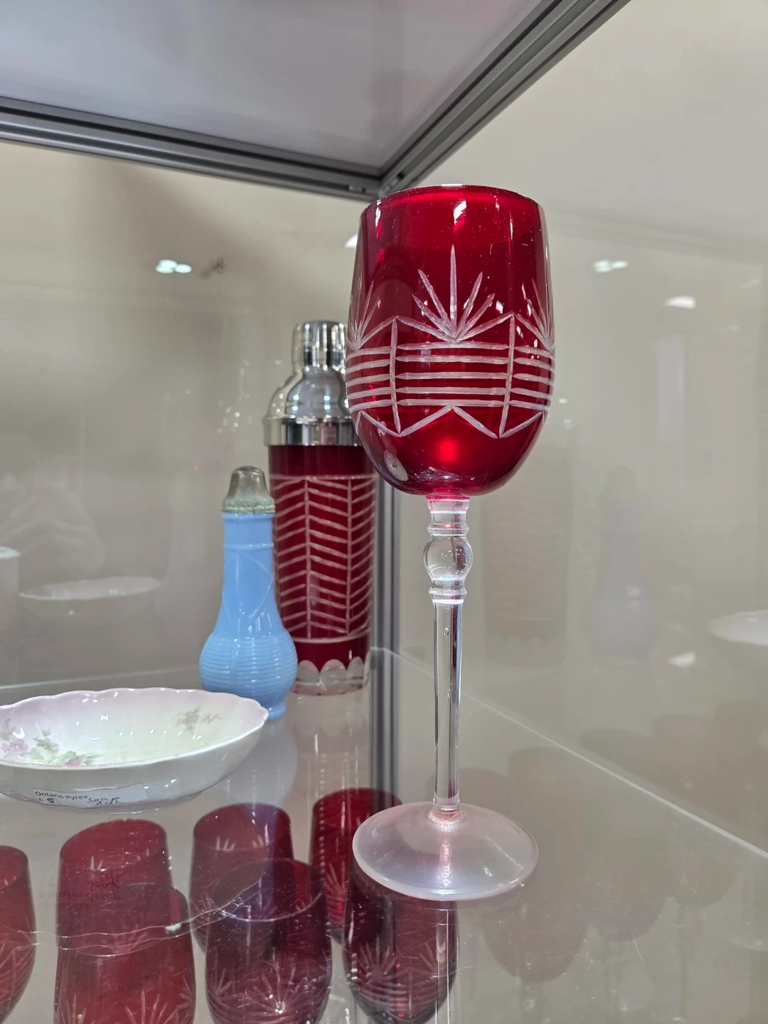 Set of 12 Red Etched Wine Glasses plus shaker