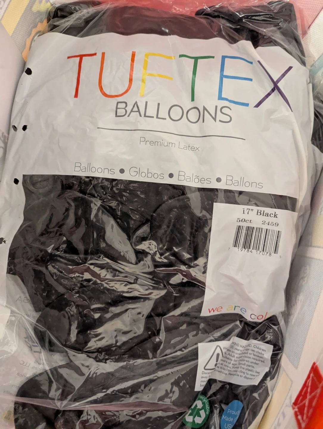 Brand new, Selling a pack of Tuftex premium latex balloons. These are 17-inch balloons in black. The pack contains 50 balloons.