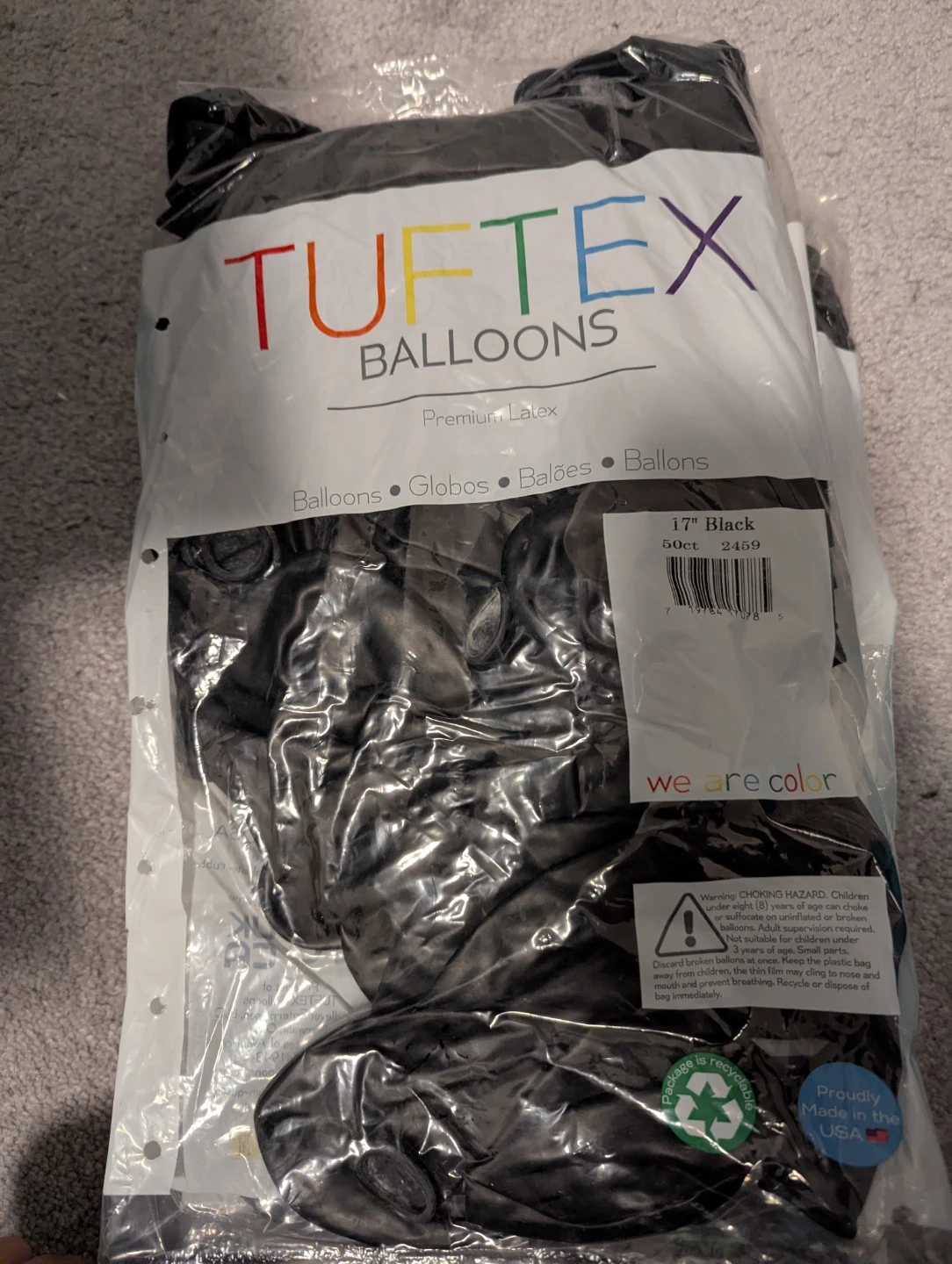 Brand new, Selling a pack of Tuftex premium latex balloons. These are 17-inch balloons in black. The pack contains 50 balloons.