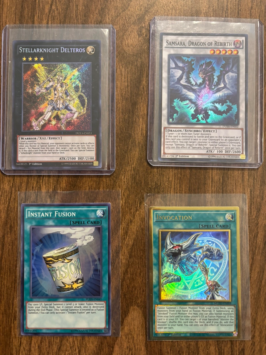 Selling a collection of Yu-Gi-Oh! trading cards. Includes Samsara, Dragon of Rebirth; Stellarknight Delteros; Instant Fusion; and Invocation. Great for collectors!