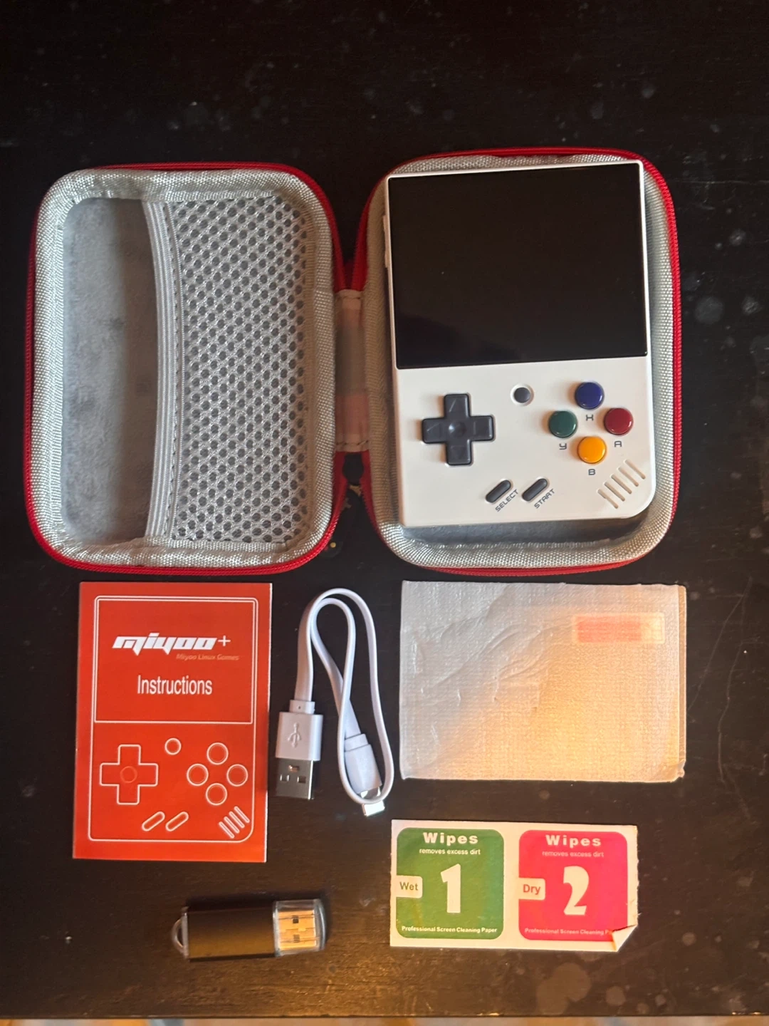 Selling a Miyoo Mini Plus handheld gaming console in white, is a neat little device for retro gaming. It comes with its original instruction manual, a USB charging cable, USB adaptor, screen protector and wet/dry cleaning wipes. It's all packed up in a protective carrying case. Perfect for gaming on the go!