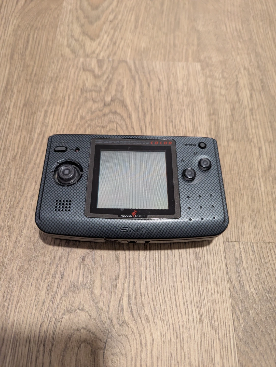 This is the SNK Neo Geo Pocket Color handheld console. It's a portable gaming device with a vibrant colour screen. This unit is ideal for retro gaming enthusiasts! W/Fatal Fury game pack (no boxes)