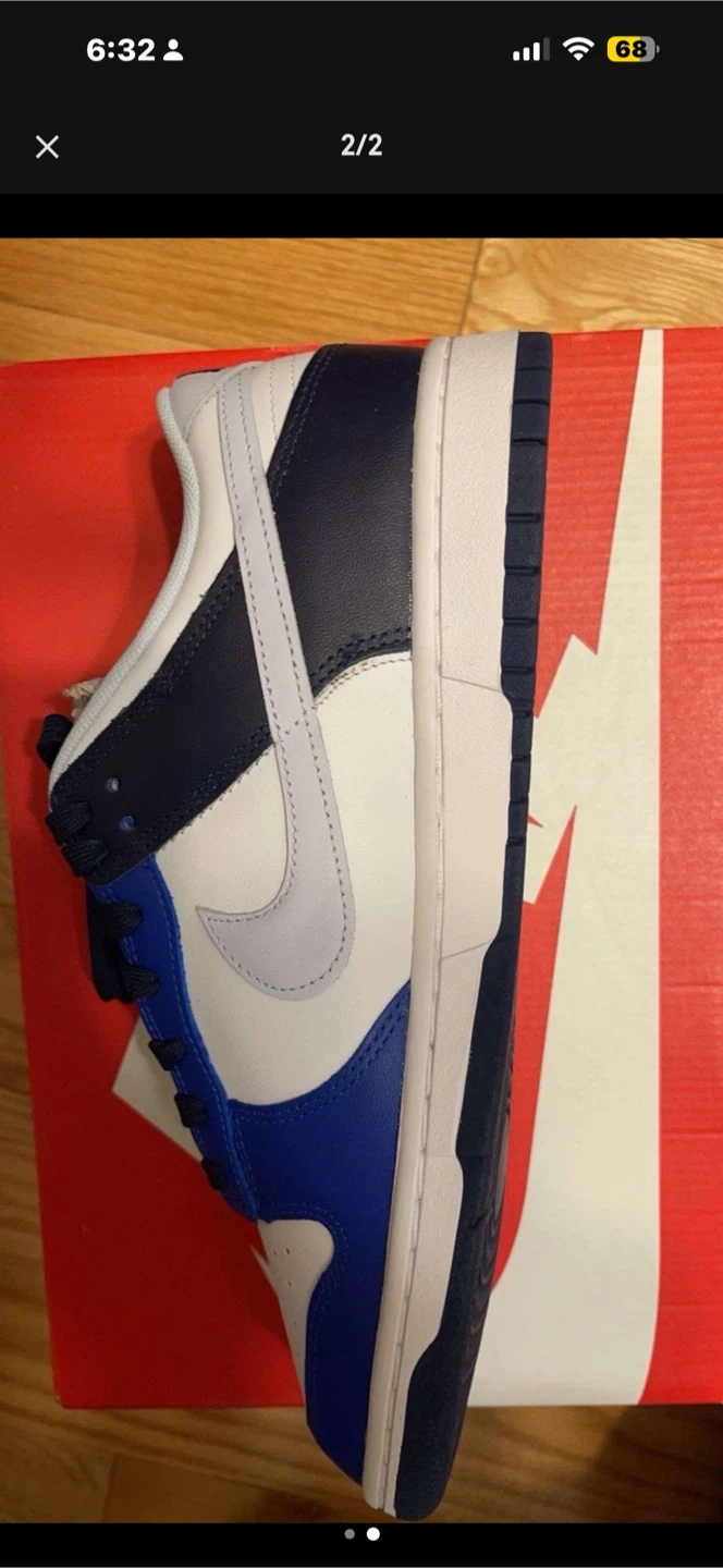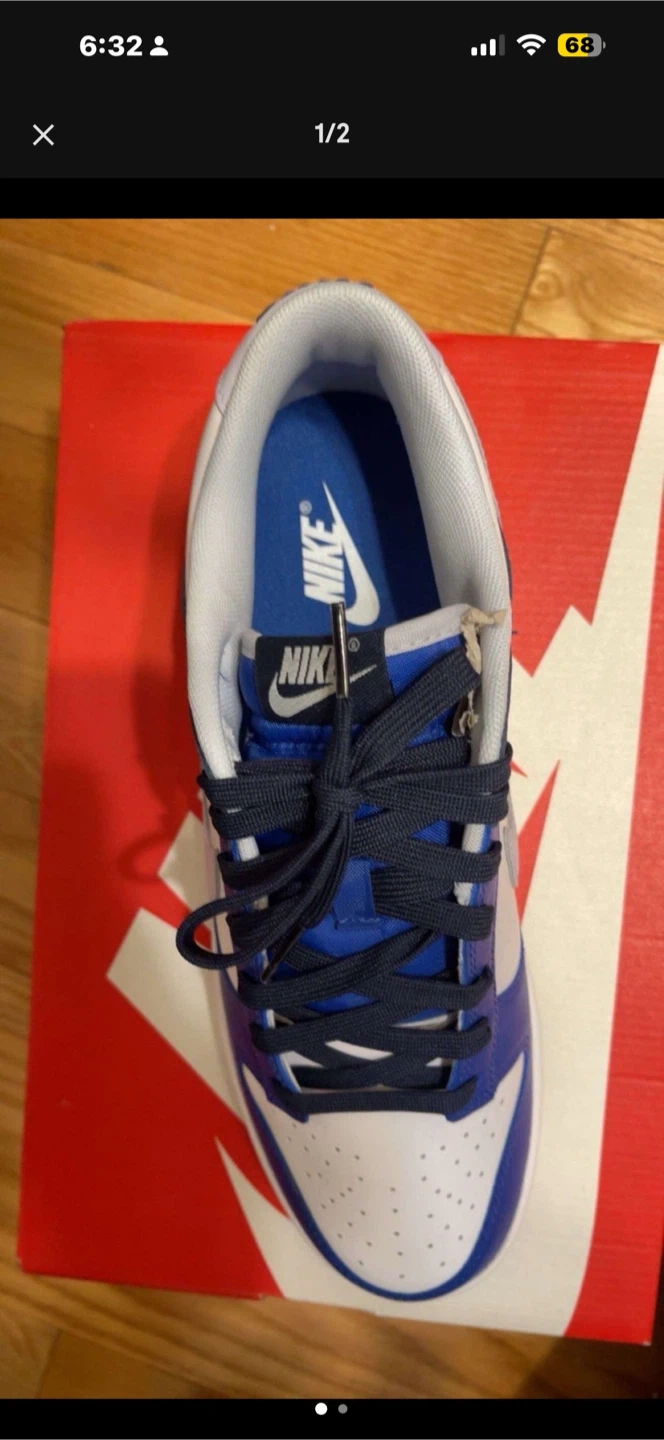 Nike Dunk Low sneakers in a royal blue and white colourway. Includes original box. These kicks are perfect for everyday wear.