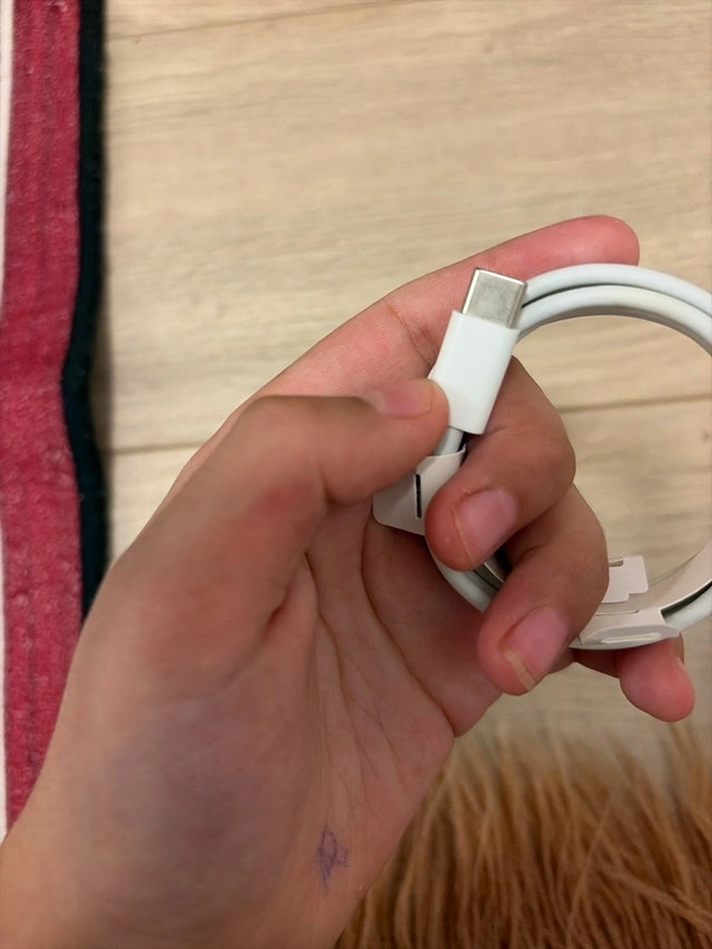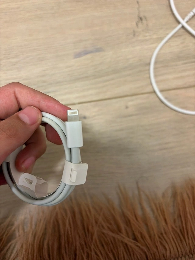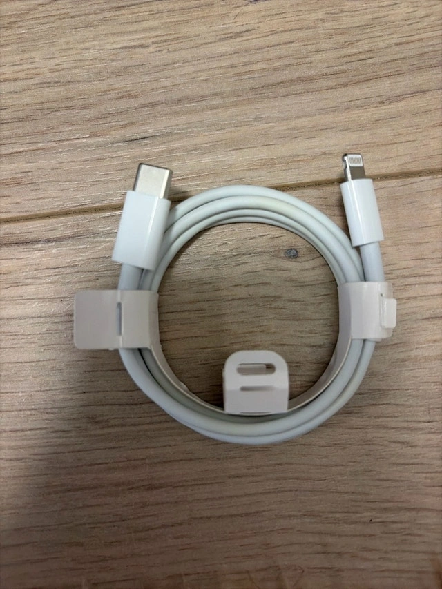 This is an original Apple USB-C to Lightning cable, perfect for charging your iPhone or iPad. It's in good, used condition, showing only light signs of wear. It's a genuine Apple product, ensuring reliable performance and compatibility with your devices. If the ad's still up, the cable is available!