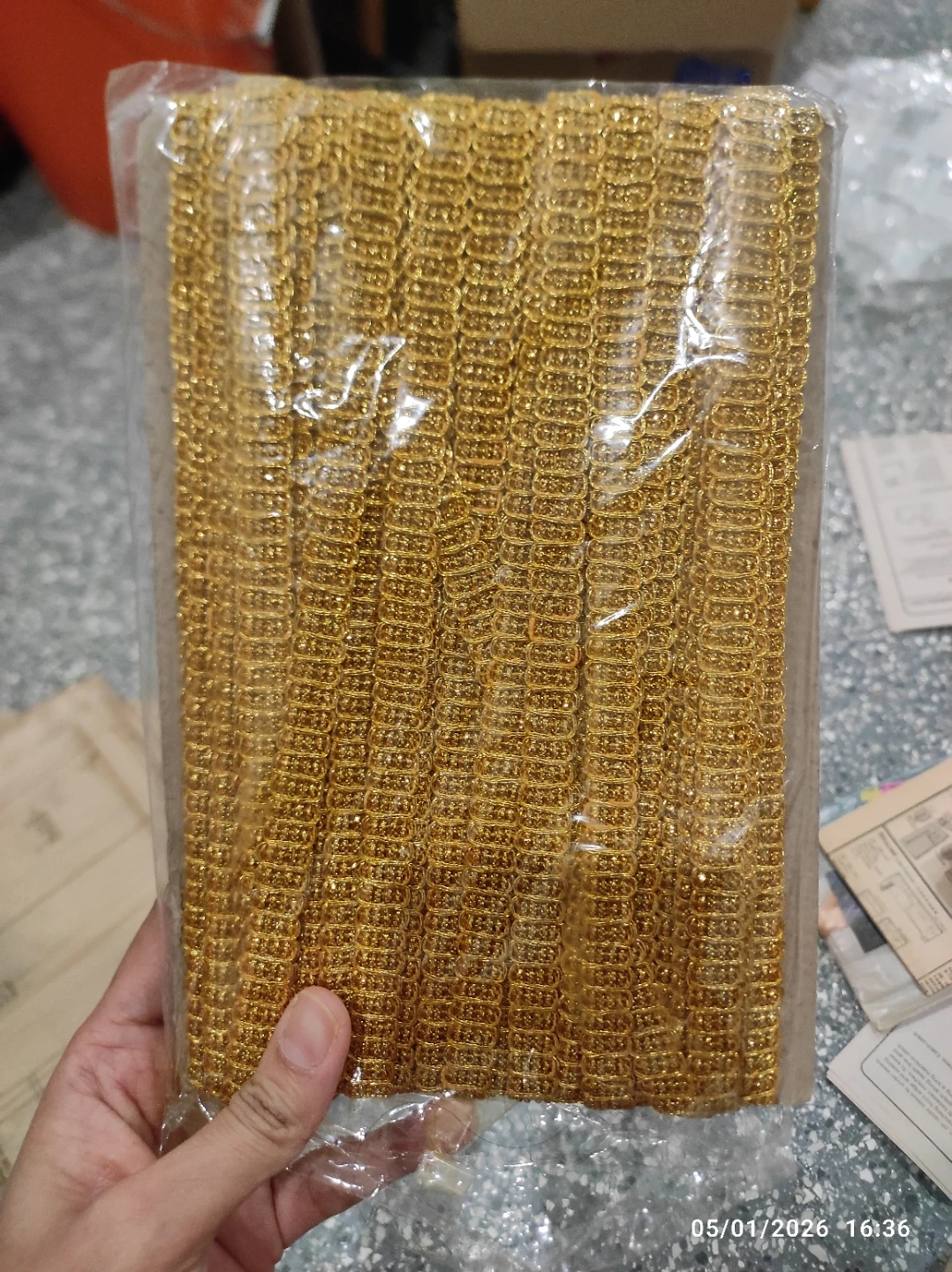 This is a new, unopened package of gold decorative chain trim! It's perfect for adding a touch of sparkle to your crafting projects or home decor