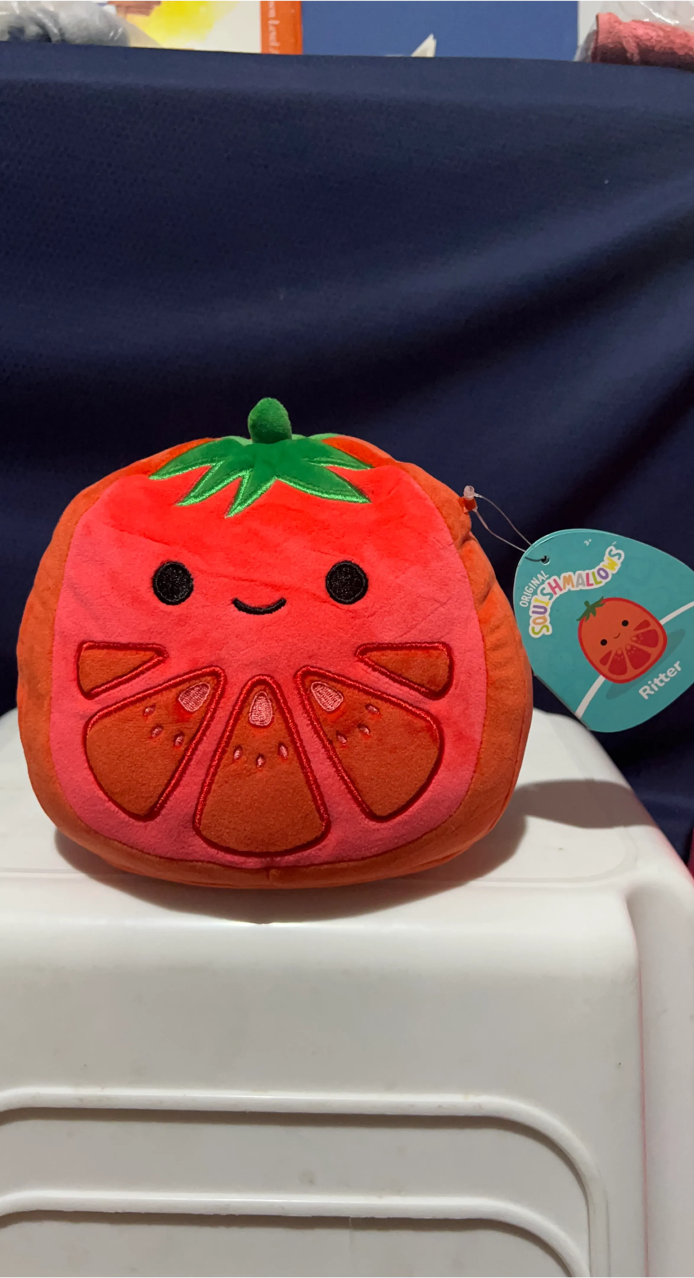 It's a Squishmallow plush toy named Ritter, designed as a Tomato. Made of soft, plush material. This adorable plush is great for collectors or as a cuddly friend!