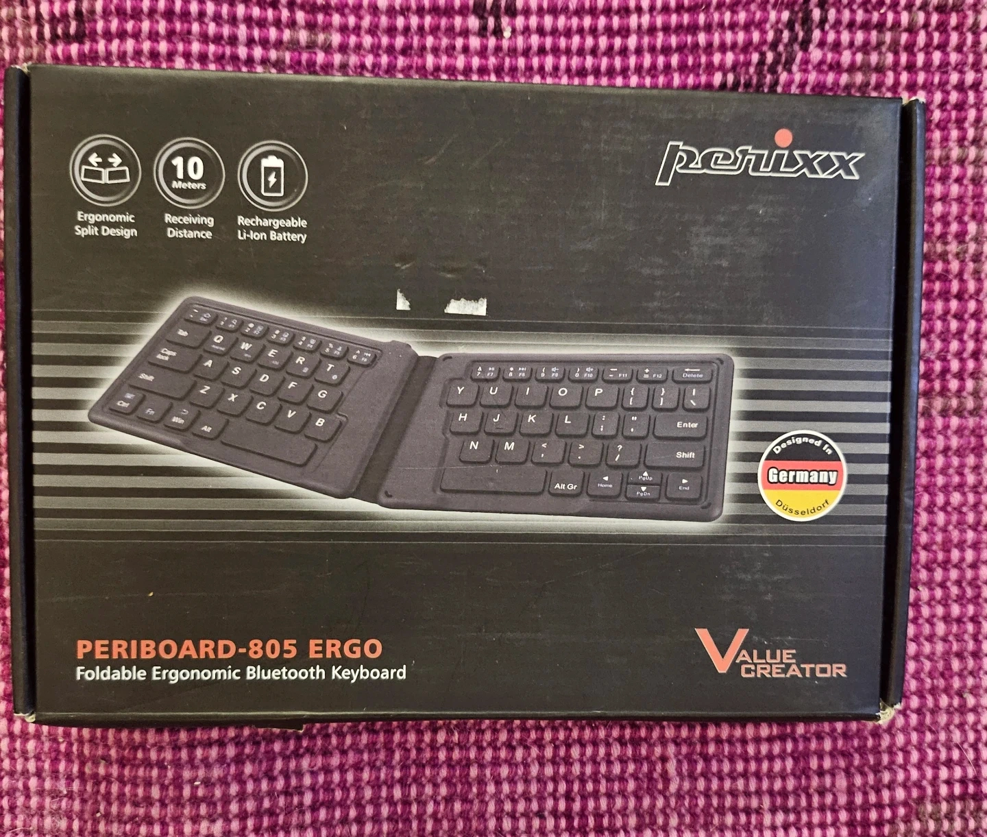 Perixx PERIBOARD-805 Ergo, a foldable wireless ergonomic keyboard.