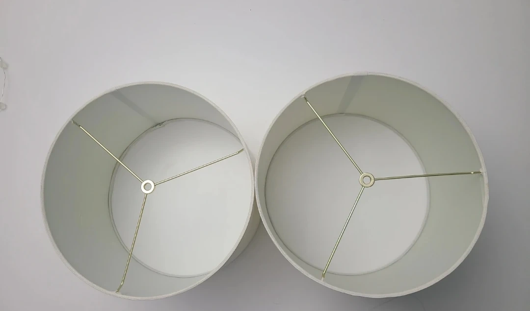 Selling a pair of cream-coloured lampshades. They're a classic drum shape with a simple fabric finish. These shades are ready to update your lamps!