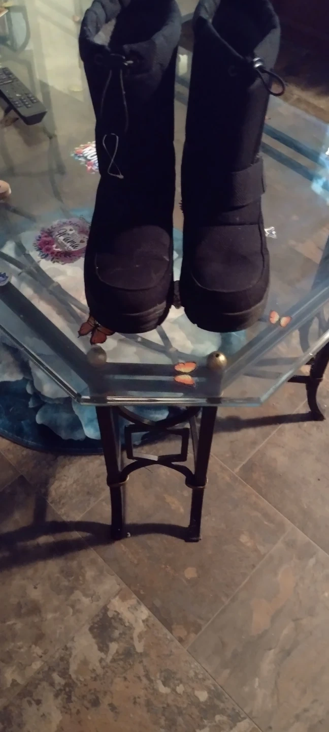 These are black boots with a size 10 tag. They are Used but still in Great Condition. Alot of Wear left in them. Good Grip.