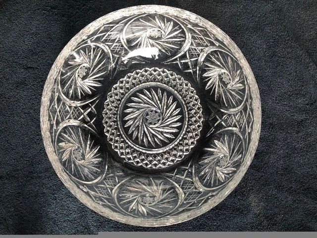 Vintage pinwheel crystal round bowl. Heavy, solid. 8.5” diameter x 3.5” height. In good condition, no chips, cracks. Pickup in Brampton, near Queen and Kennedy.