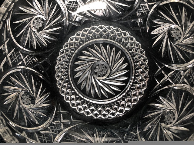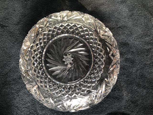 Vintage pinwheel crystal round bowl. Heavy, solid. 8.5” diameter x 3.5” height. In good condition, no chips, cracks. Pickup in Brampton, near Queen and Kennedy.