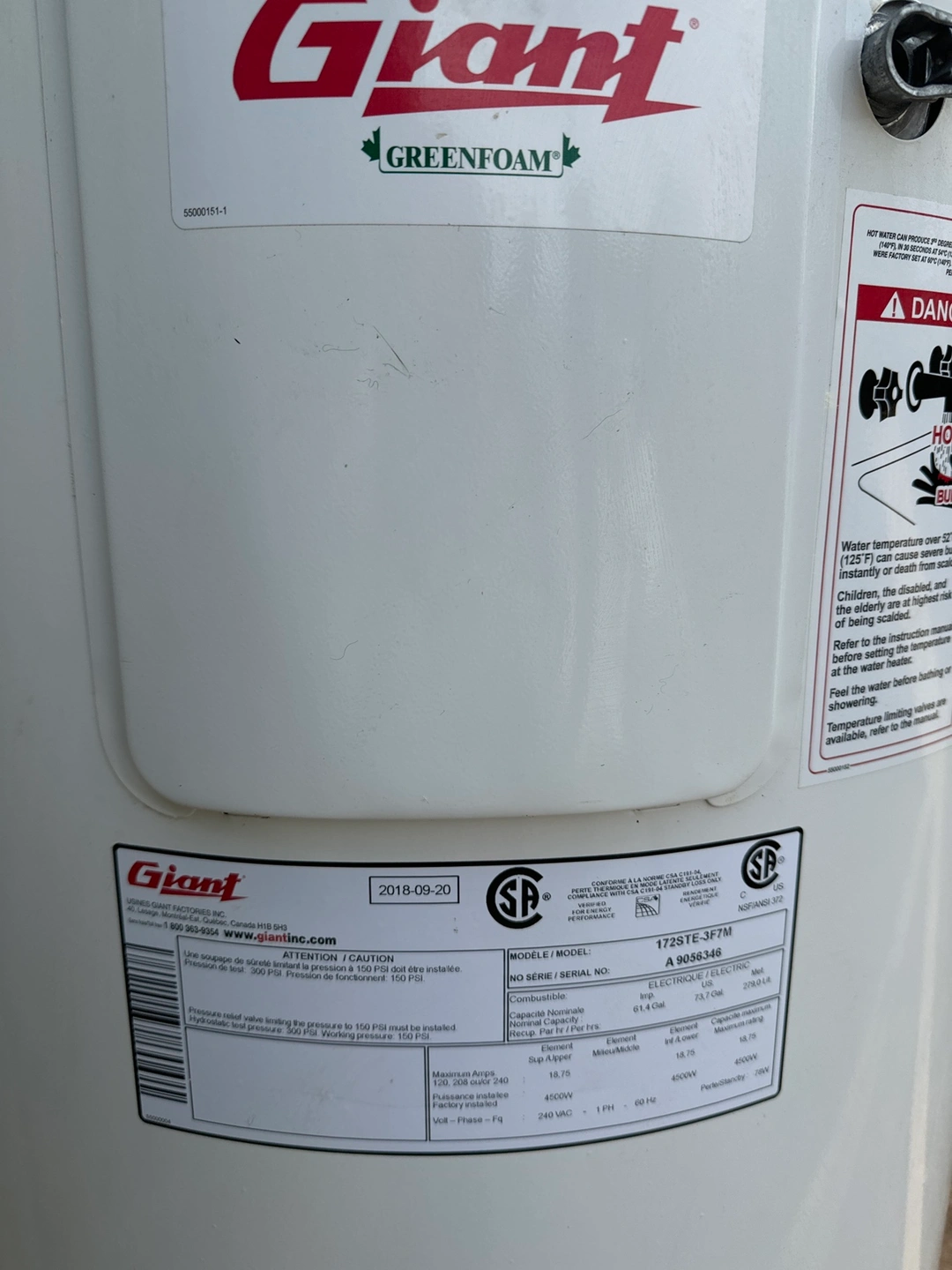 Giant Greenfoam Electric Water Heater