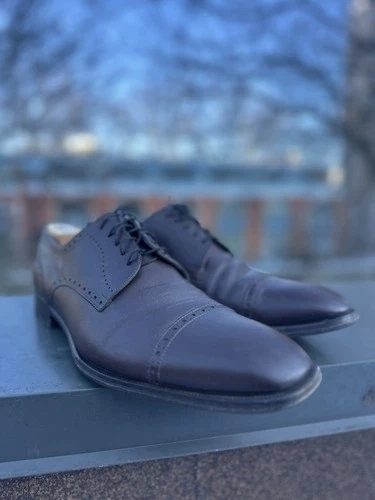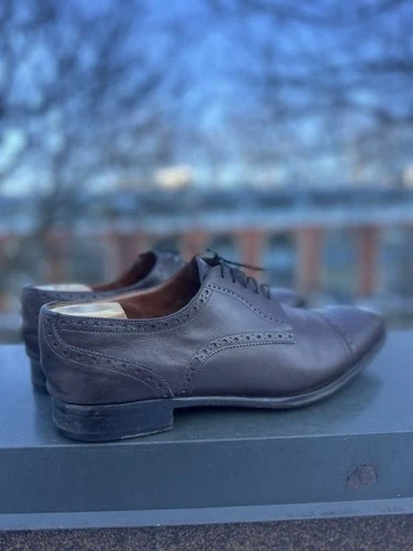 Made in Italy. Classic lace-up oxfords with brogue detailing, genuine leather upper and sole. Pre-owned, good condition with normal signs of wear. High-quality Italian craftsmanship. Condition 8.7/10.