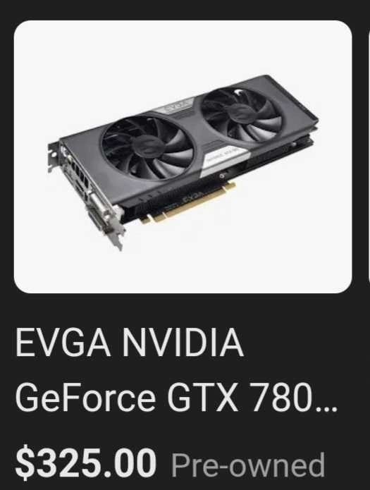 Selling my EVGA GeForce GTX 780 Ti graphics card, a solid performer for gaming and other graphical tasks. This card has been well-maintained and is in good working condition, ready to boost your system's performance. This is a used card. Specifications: * Chipset: NVIDIA GeForce GTX 780 Ti * Memory: 3GB GDDR5 * Interface: PCI Express 3.0 * Outputs: Dual DVI, HDMI, DisplayPort If the ad's up, the card's still up for grabs!