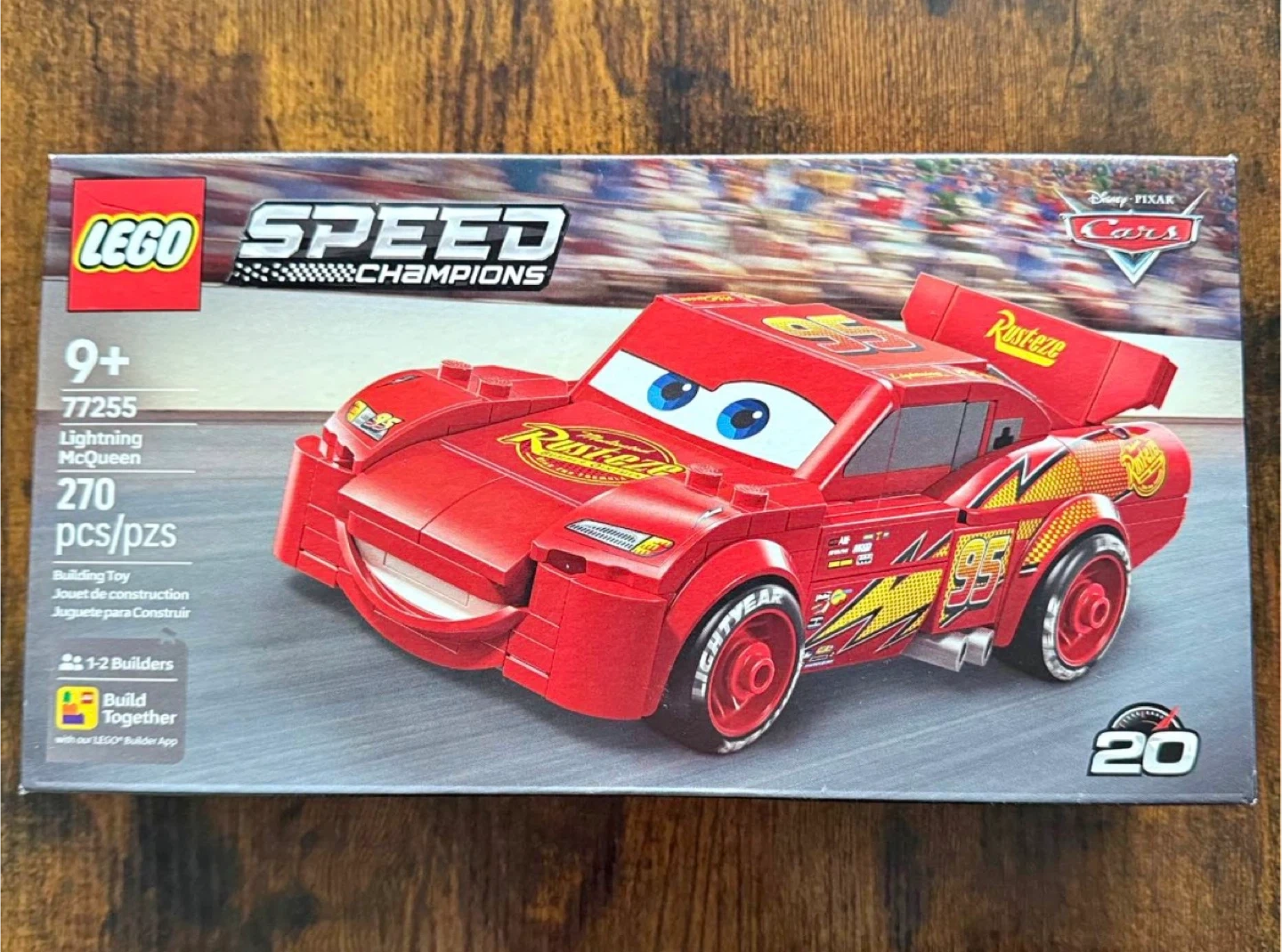 This is the LEGO Speed Champions 77255 Lightning McQueen set. It includes 270 pieces for building. Recommended for builders aged 9 and up.