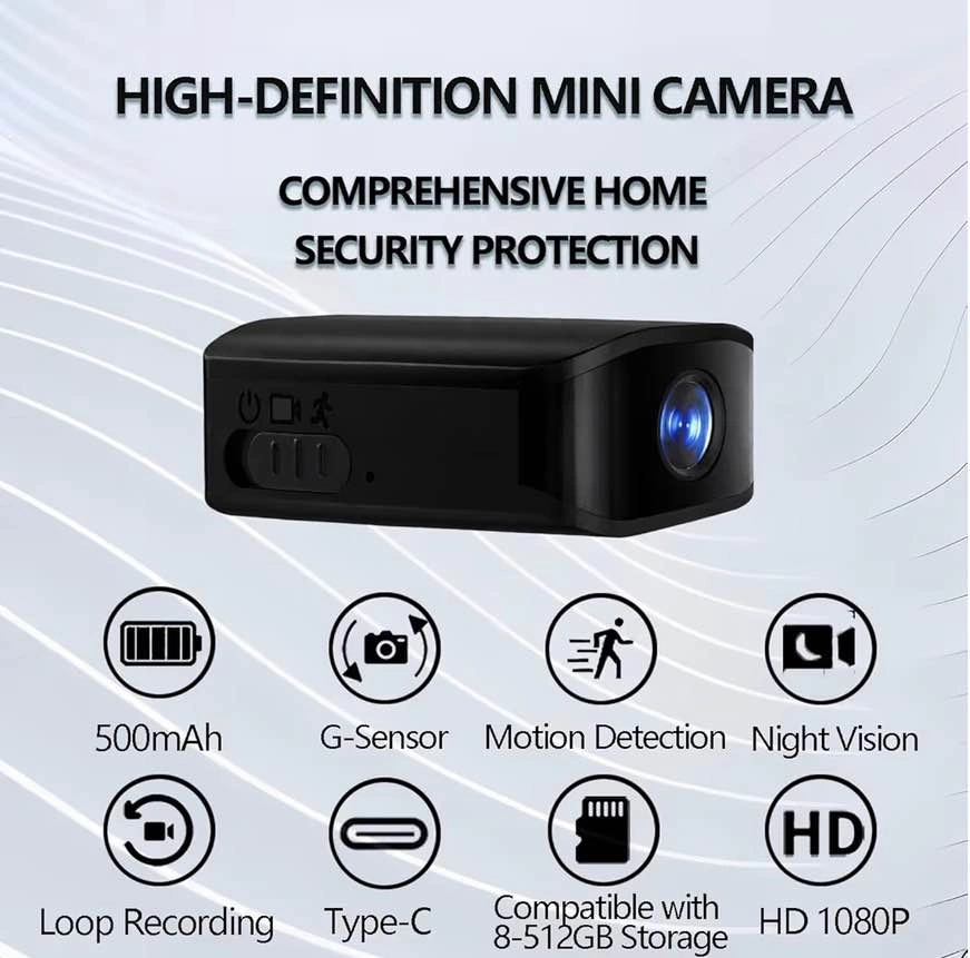 Compact size, suitable for indoor and outdoor use. High Definition (HD) 1080p resolution. No WiFi required. Compatible with 512GB storage. Features motion detection and night vision. Includes a gravity sensor. Feel free to message if you have any questions!