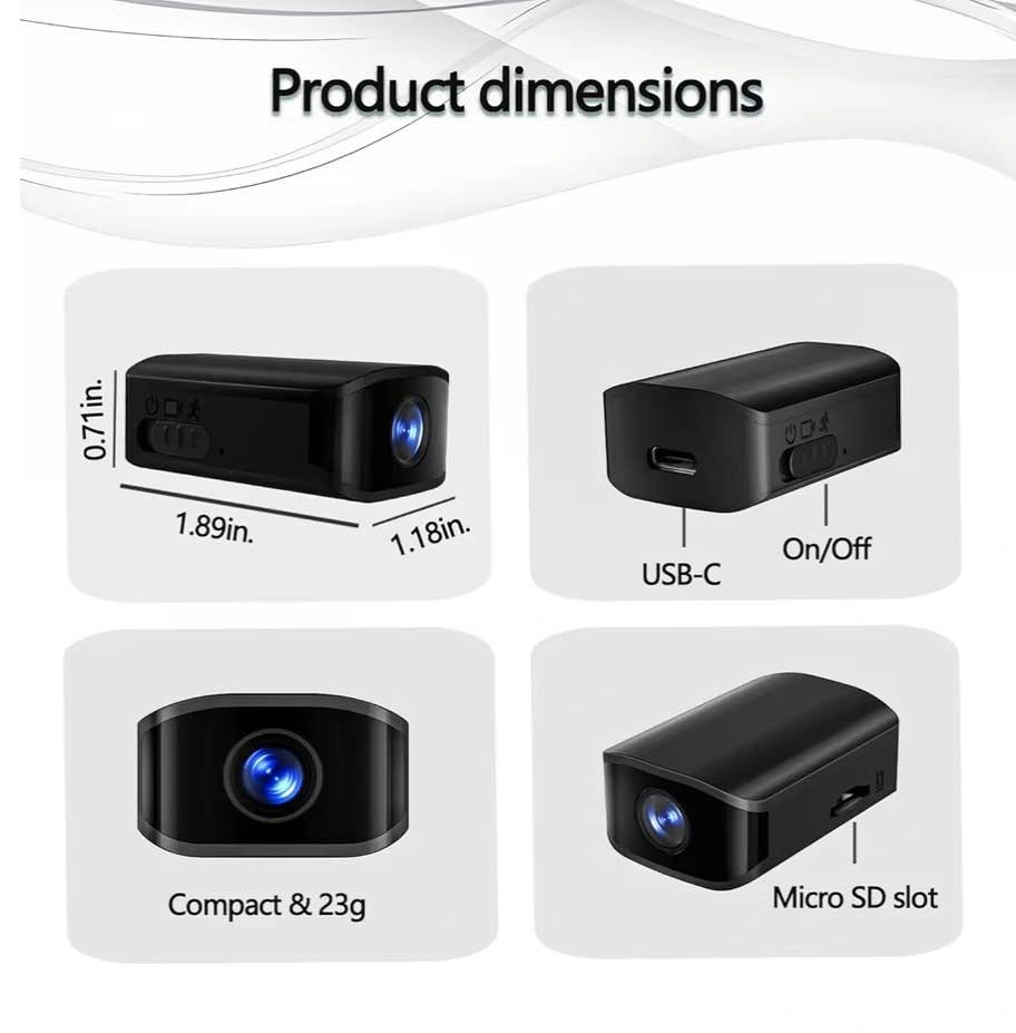 Compact size, suitable for indoor and outdoor use. High Definition (HD) 1080p resolution. No WiFi required. Compatible with 512GB storage. Features motion detection and night vision. Includes a gravity sensor. Feel free to message if you have any questions!