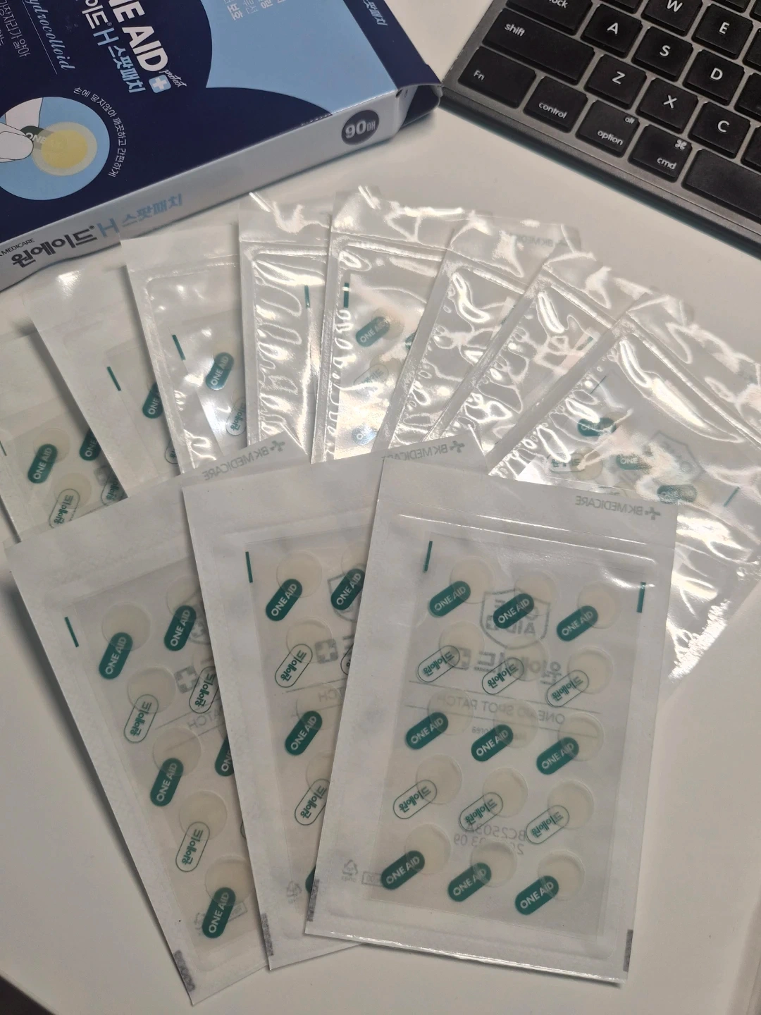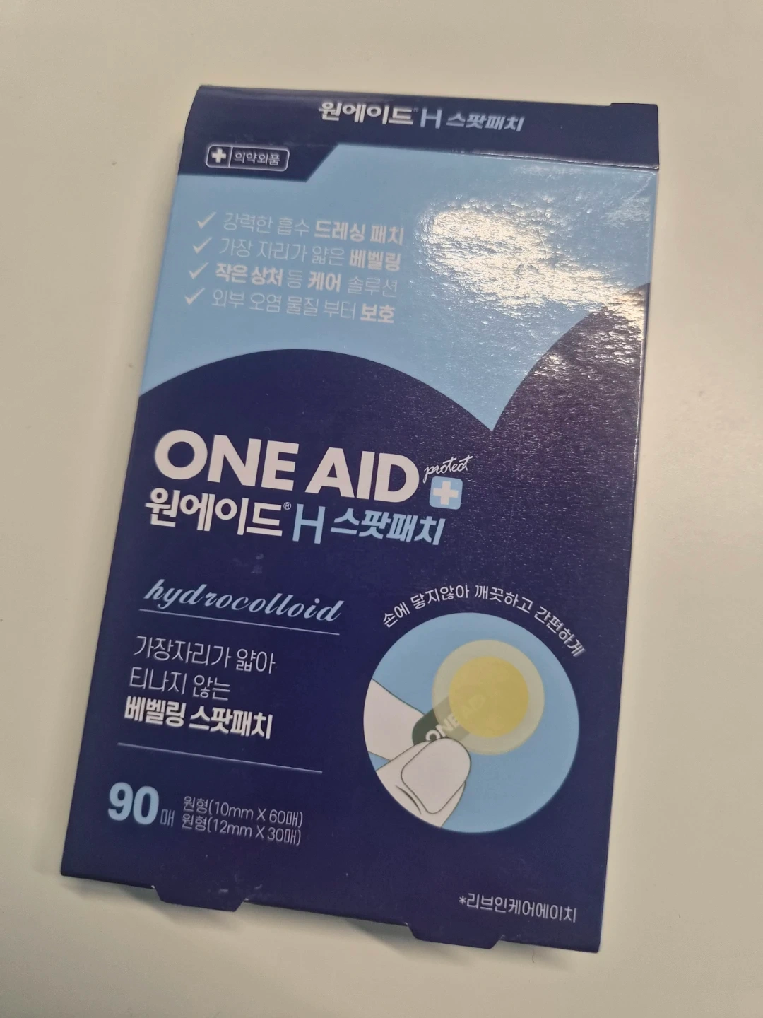 ONE AID H hydrocolloid spot patches, 165 count. Includes 60 round patches (10mm) 3 packs (45 count) and 30 round patches (12mm) 8 packs (120 count). Protects small wounds and blemishes from external contaminants.