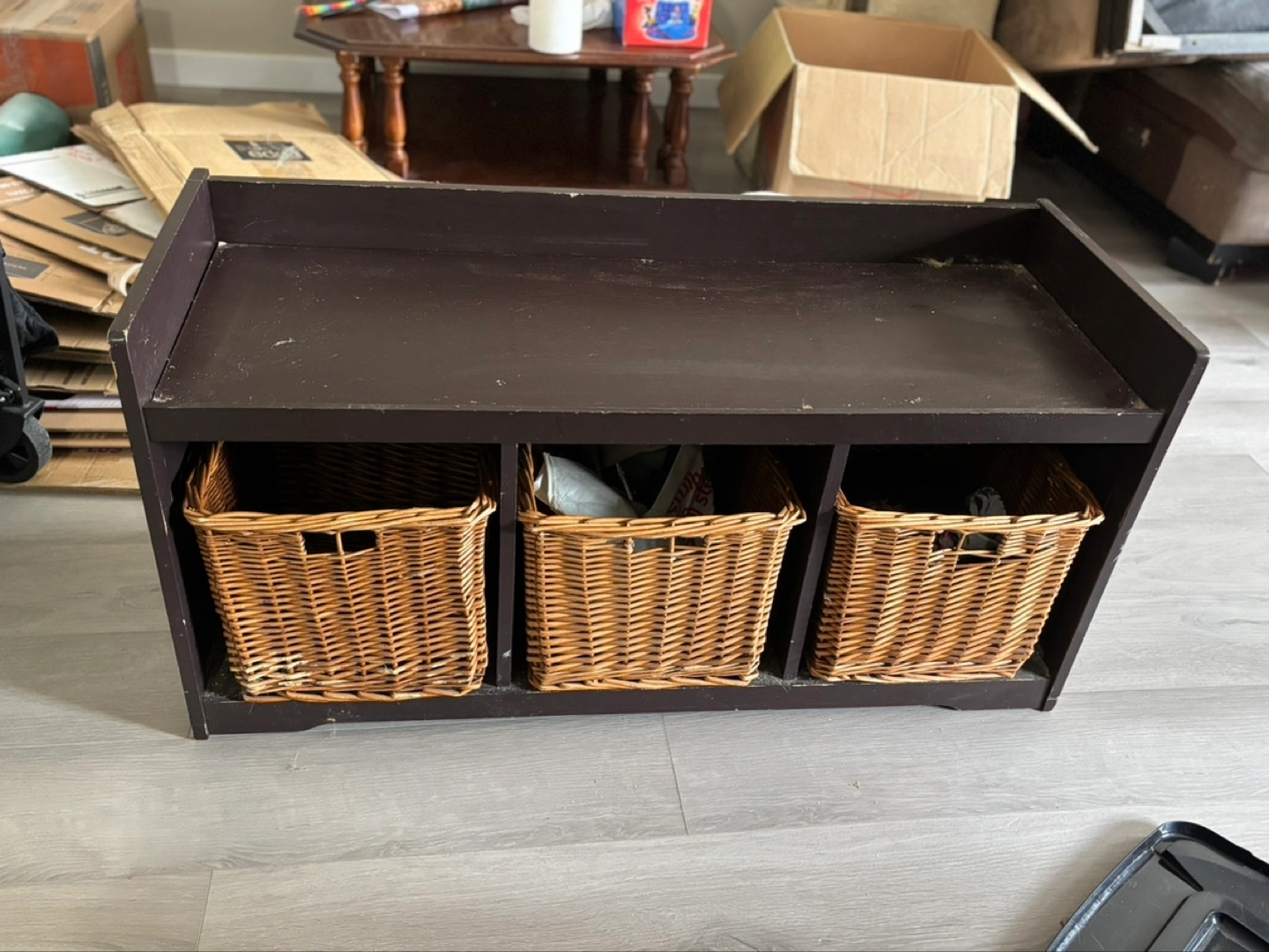 1 / 11 / 1Buy & SellBrown Wooden Storage Bench with Three Wicker BasketsBrown Wooden Storage Bench with Three Wicker Baskets$40Dark brown wooden bench with three woven baskets. Perfect for entryway storage. Some minor wear. OBOWHERE TO MEETCheck LocationView MapSELLERverifiedMaddyGlenwood782 reviews0 chats·0 favorites·44 viewsSEND CHAT TO SELLERHi Maddy! I’m interested in your listing.Hi Maddy! I’m interested in your listing.Get the Karrot app to chatSign In to chat