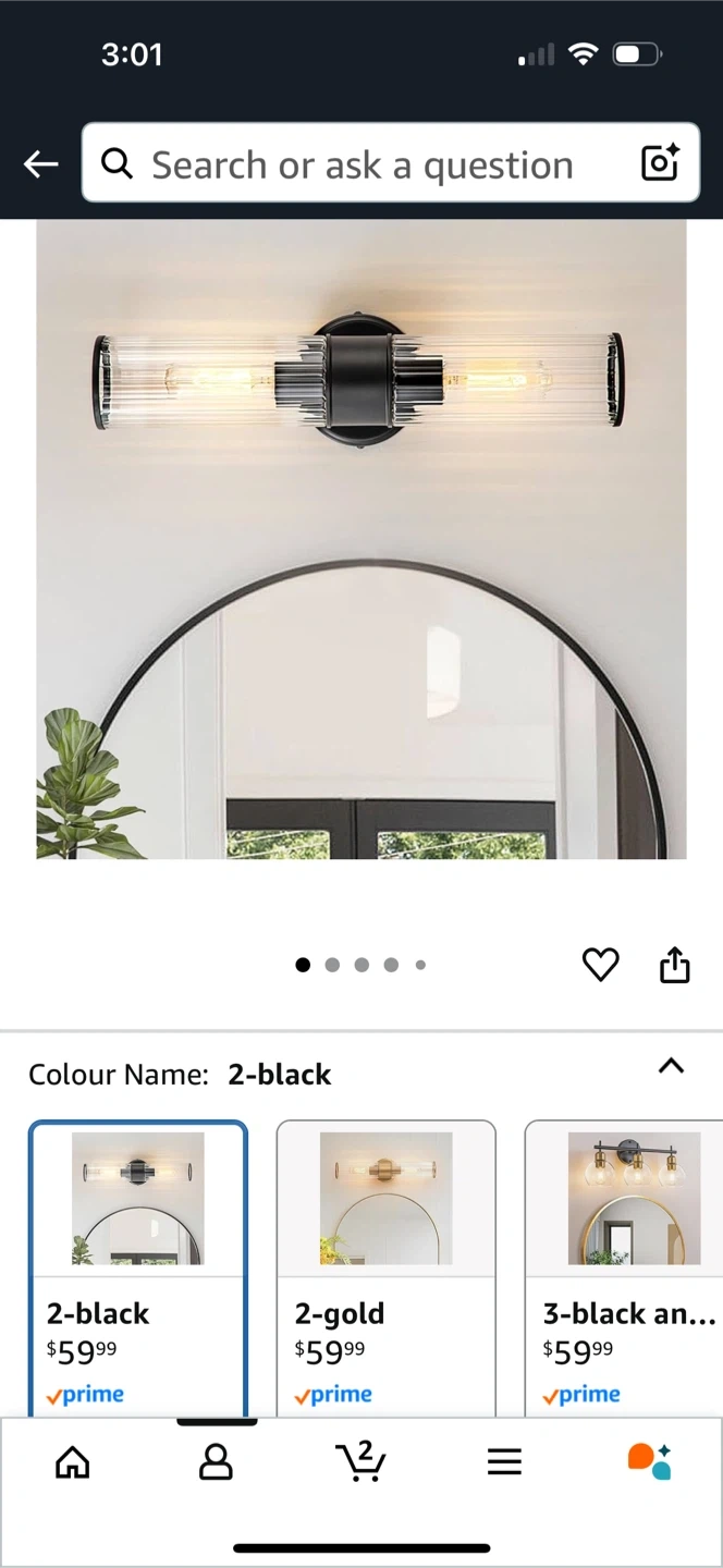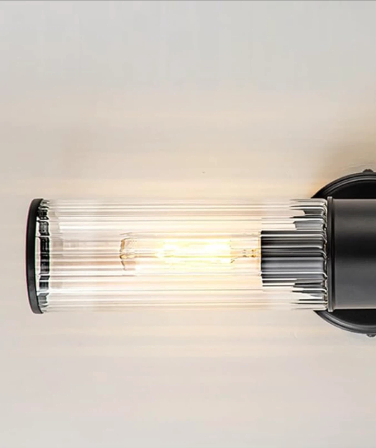 Only 1 not a pair just holds 2 bulbs This is a two-light black wall sconce featuring clear ribbed glass shades. It uses E26 bulbs, max 60W each, and operates at 110V. The fixture measures 47.5cm in height and 13.5cm in width.