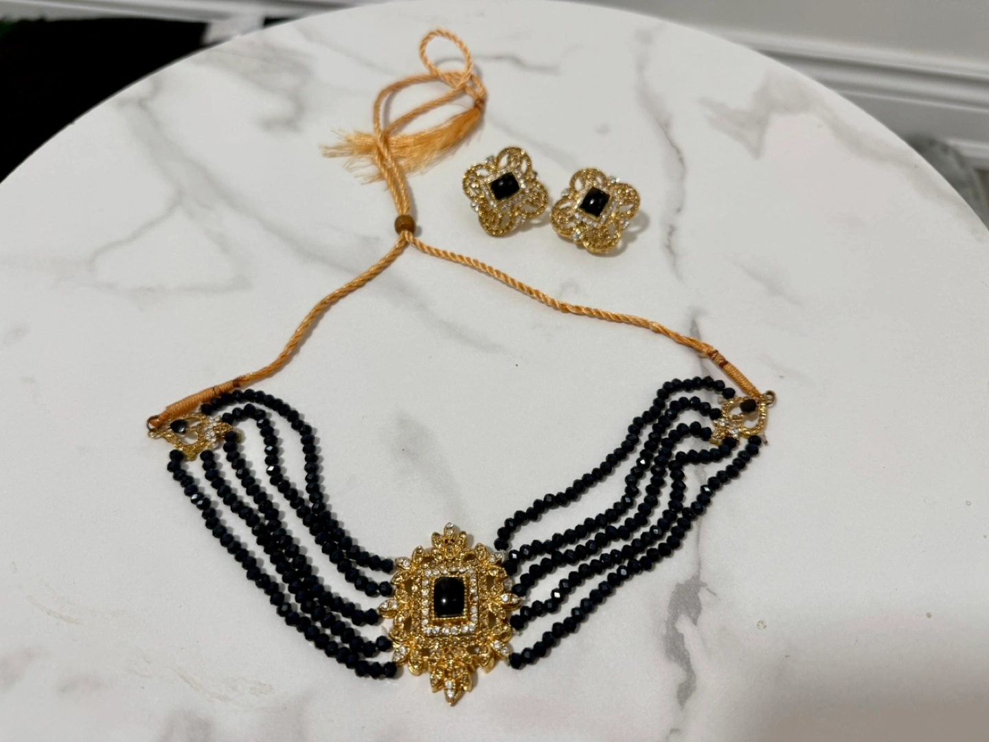 Blue Beaded chokar & Earring Set