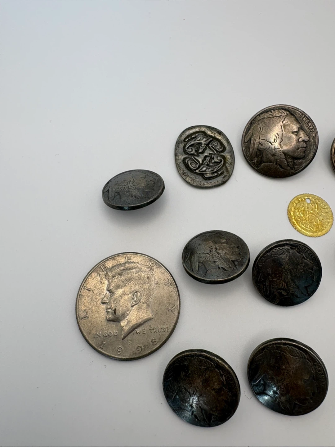 Buy & SellVINTAGE COINSVINTAGE COINS$155A. United States Buffalo Nickels, minted between 1913 and 1938. B. Gold necklace coins C. Kennedy half dollarWHERE TO MEETCheck LocationView MapSELLERverifiedMuhibDowntown650 reviews0 chats·1 favorites·28 viewsSEND CHAT TO SELLERHi Muhib! I’m interested in your listing.Hi Muhib! I’m interested in your listing.Get the Karrot app to chatSign In to chat