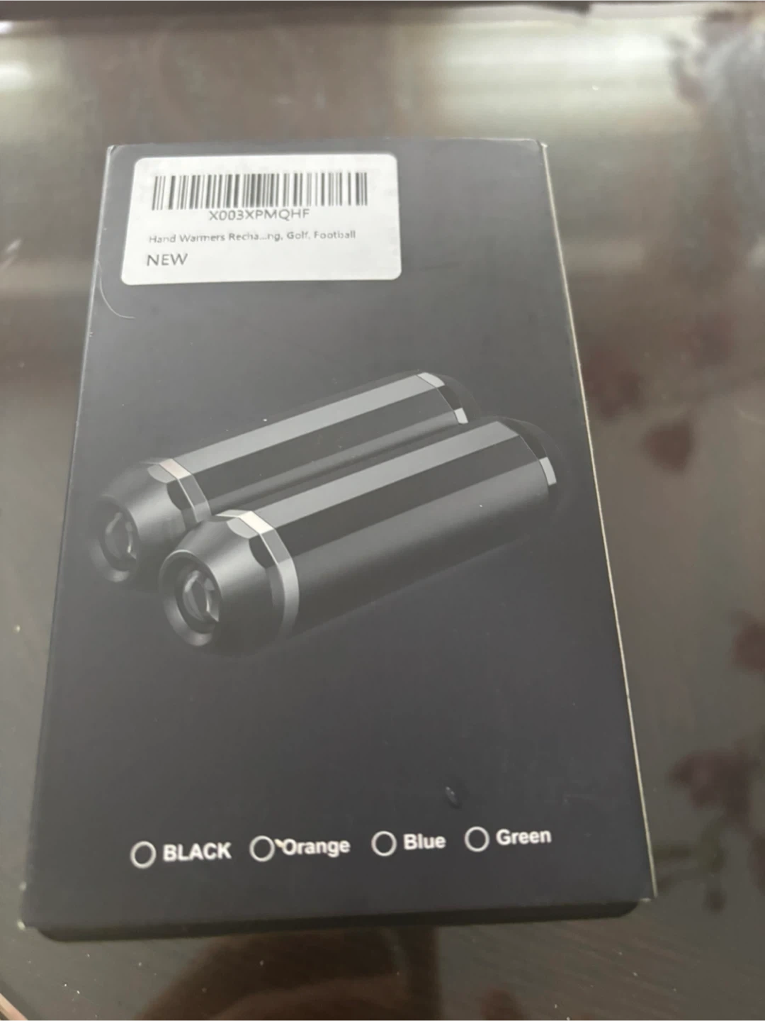 These are a pair of new rechargeable hand warmers! They are black and come in the original box. Perfect for golf, football, or any outdoor activity where you need to keep your hands warm!
