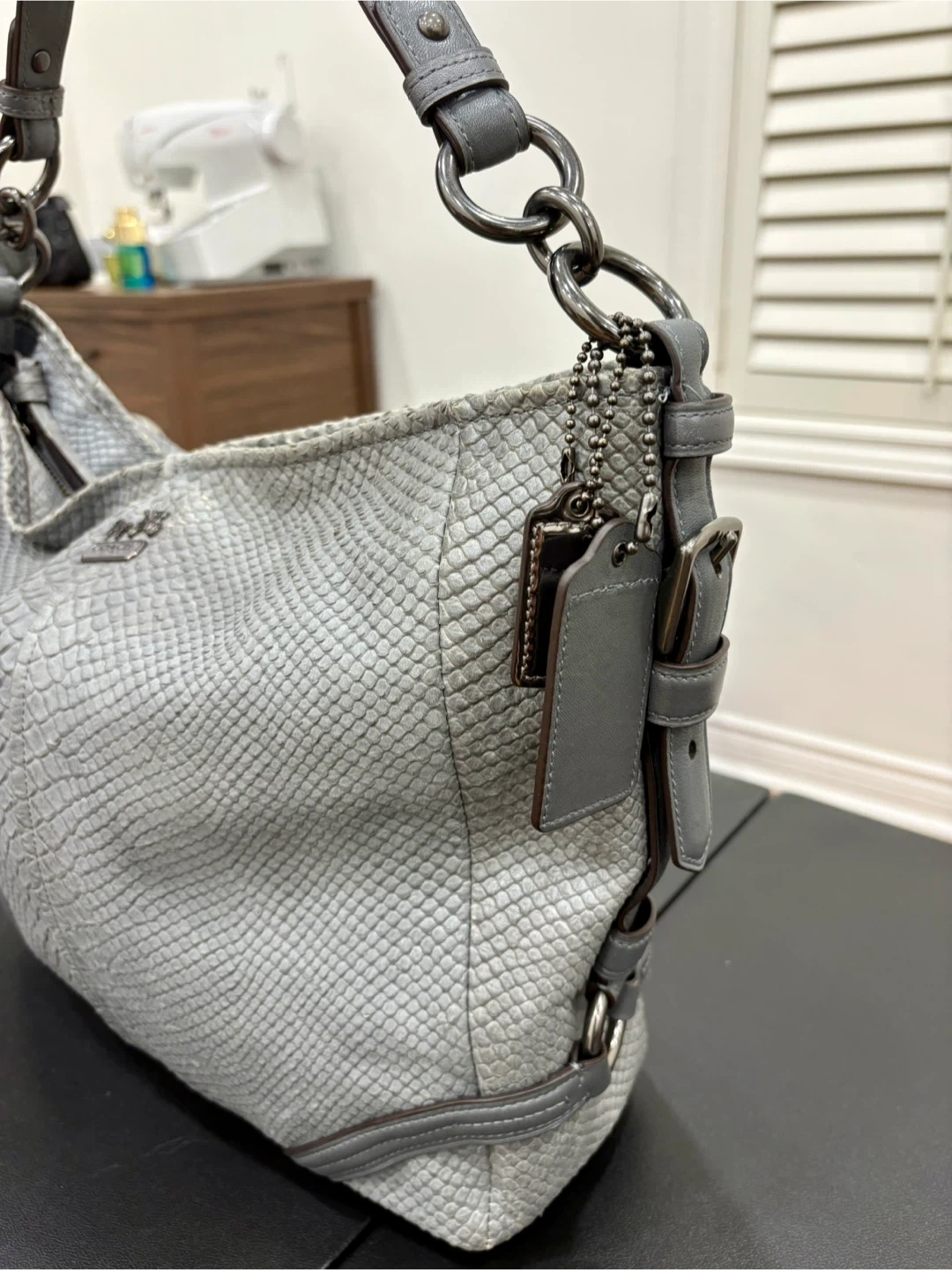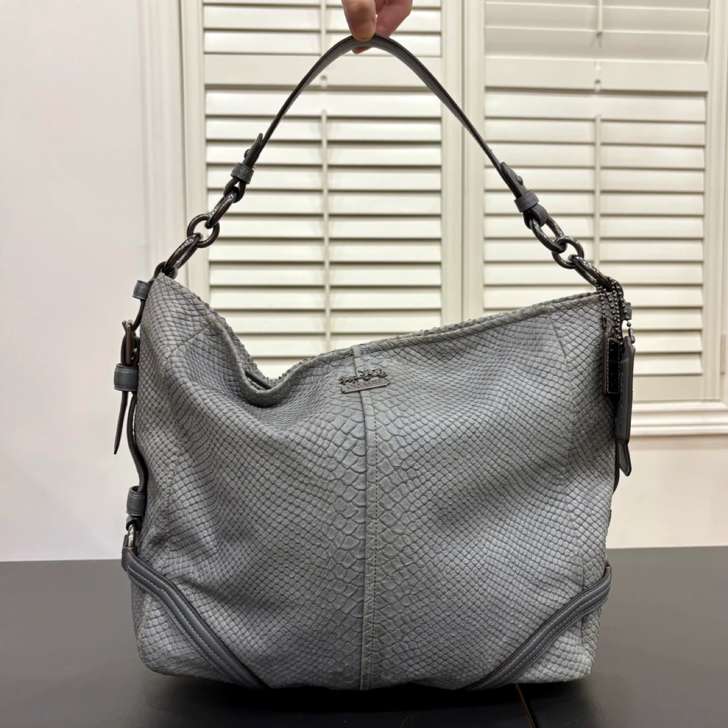 Coach Katarina Slouchy Hobo Grey Snakeskin/Python Embossed Bag