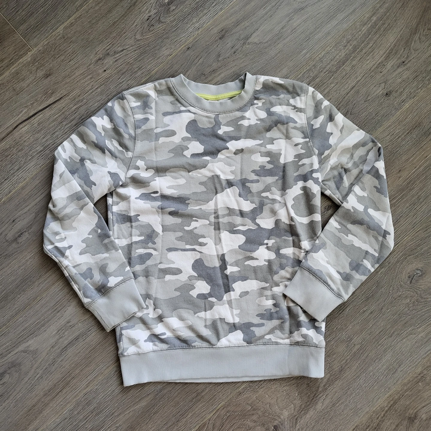 Here's a comfy crewneck sweatshirt from Joe Fresh with a cool camouflage print! It's in great shape and ready for a new owner. Perfect for casual wear or layering up on cooler days