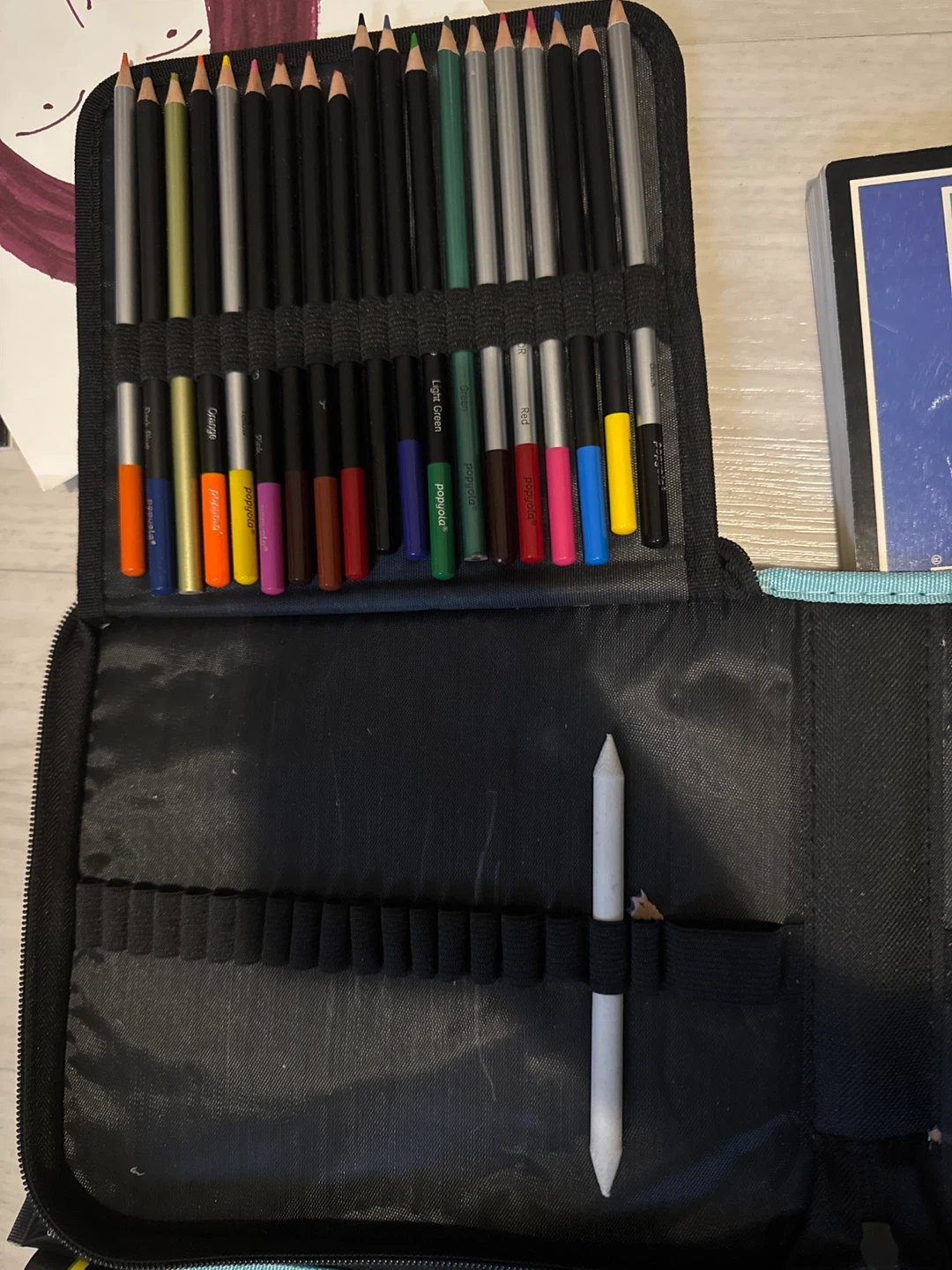 Selling an artist pencil set that comes with a case. It includes a variety of coloured pencils, charcoal pencils, blending stumps, and other art supplies. Perfect for drawing and sketching!