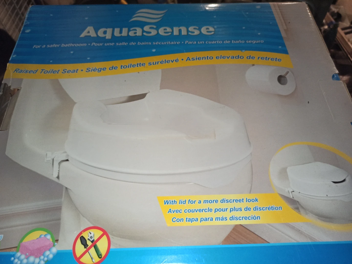 The AquaSense Raised Toilet Seat with Lid raises the toilet seat height by 2″ or 4″. It is also available in an elongated option. It attaches securely and tool-free to most toilets and can be used along with toilet safety rails for added support.