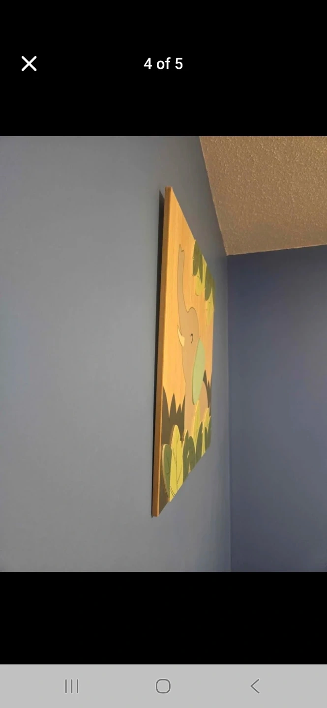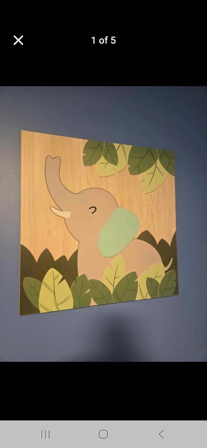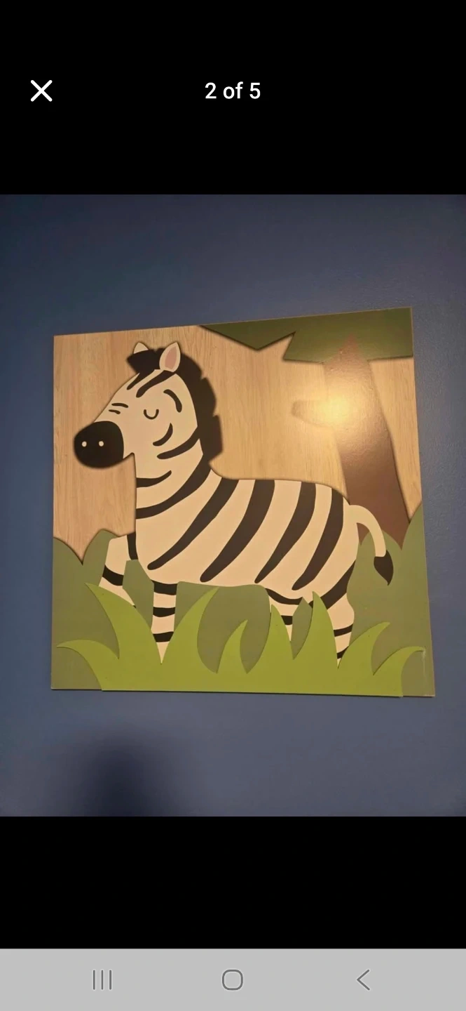 Set of two wooden wall art pieces featuring a cute elephant and a zebra design. These are perfect for a nursery or child's bedroom. 19 inches square.