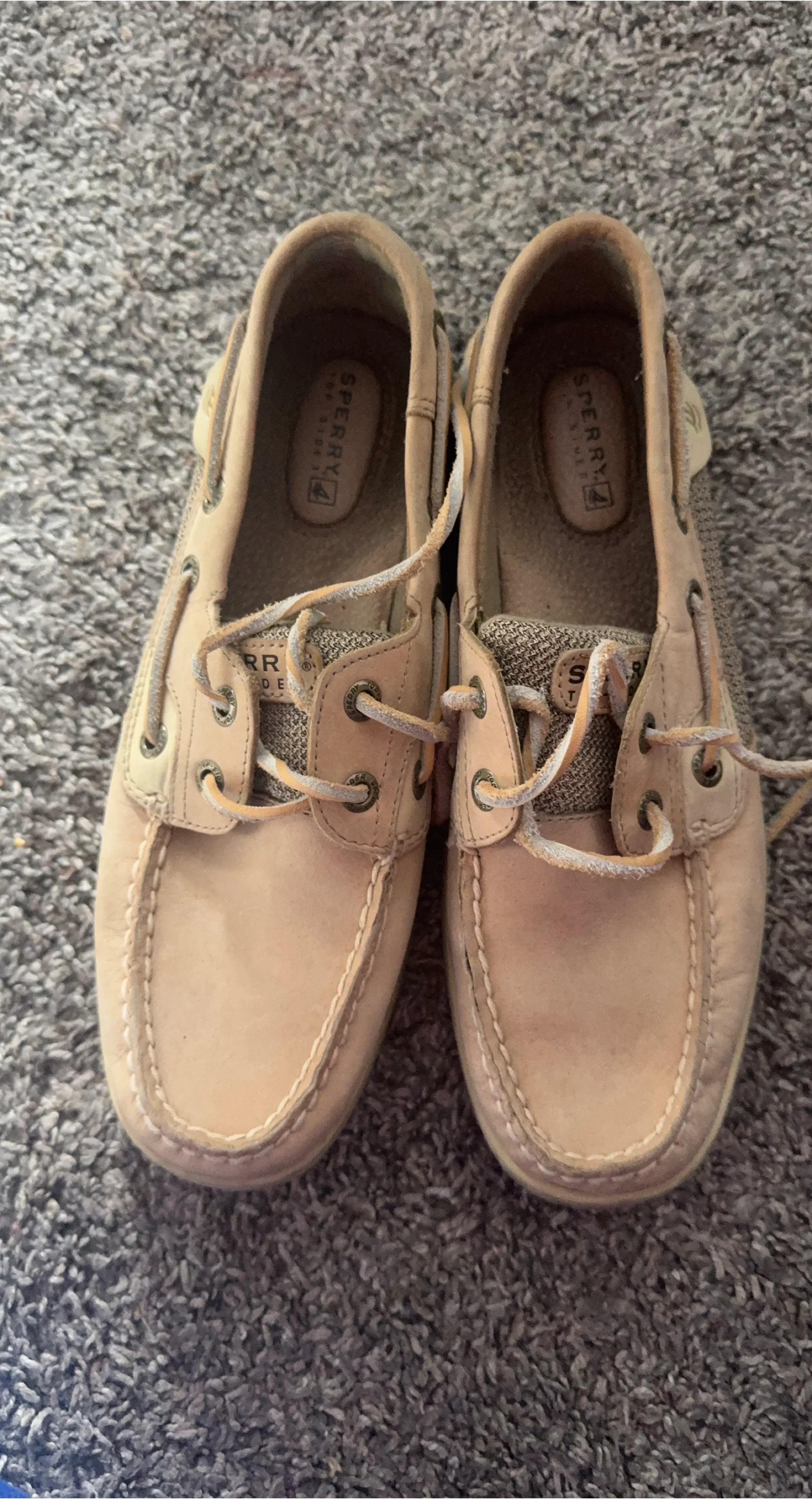 Selling a pair of Sperry Top-Sider boat shoes in women's size 7M. These shoes have a leather upper and are perfect for casual wear. They're in good condition and ready for a new owner!