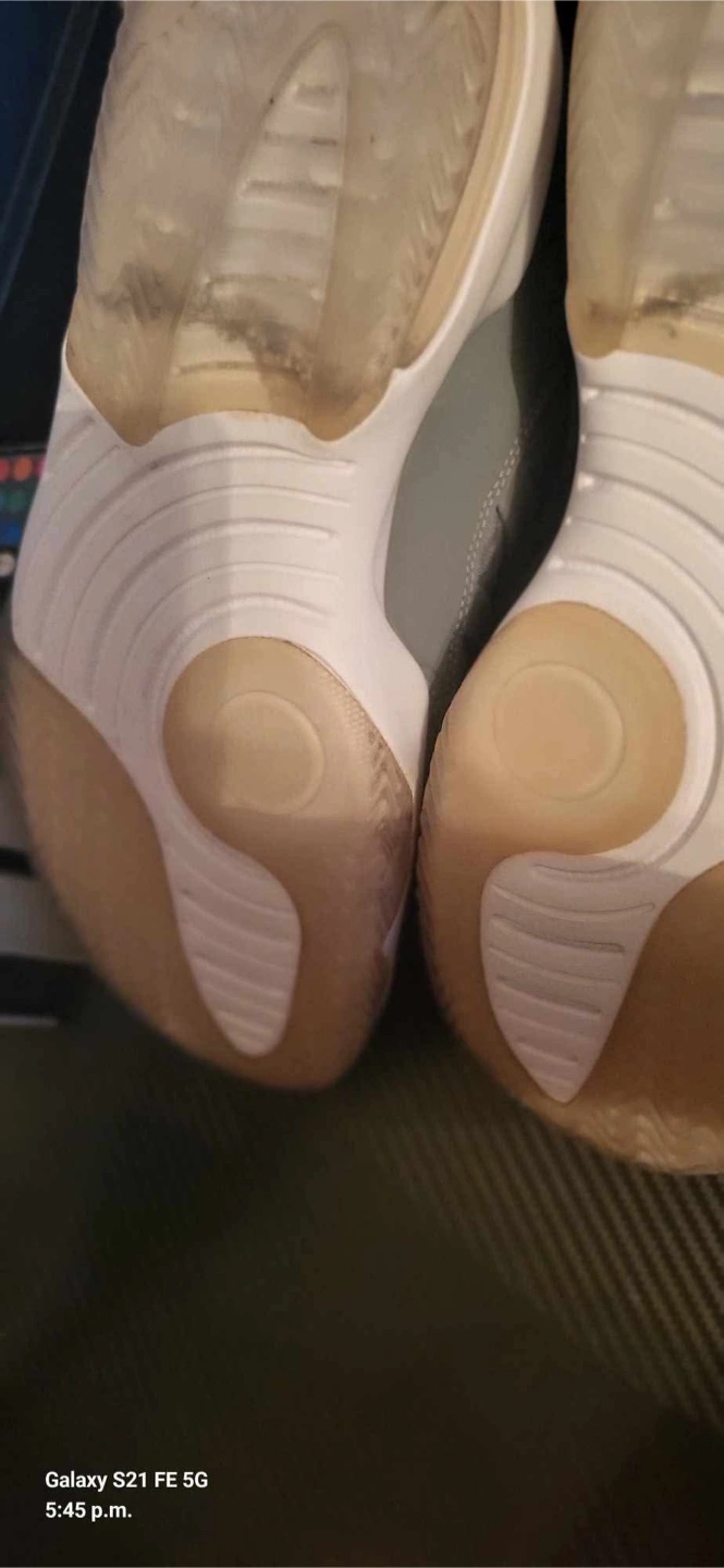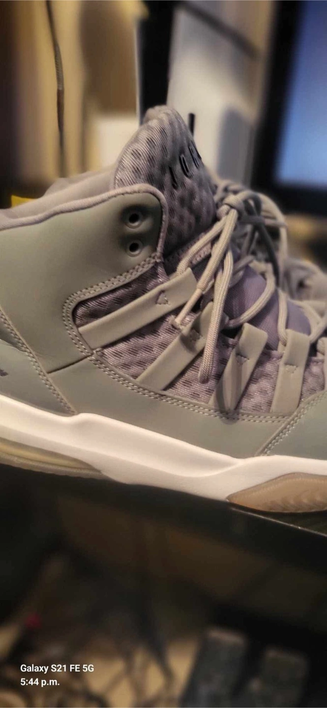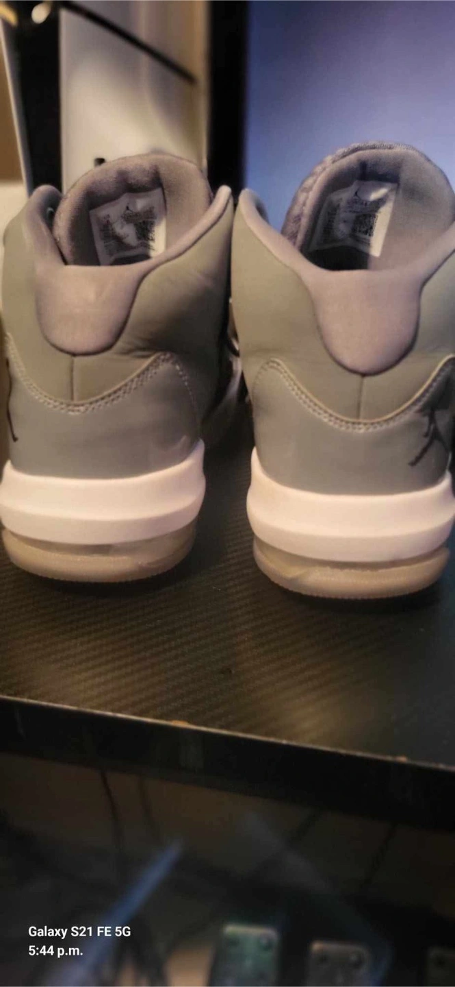 Grey Jordan mid-top sneakers. Size US 8. I restored these so they’re clean. Kinda creased a bit and bottom is a lil dirty.