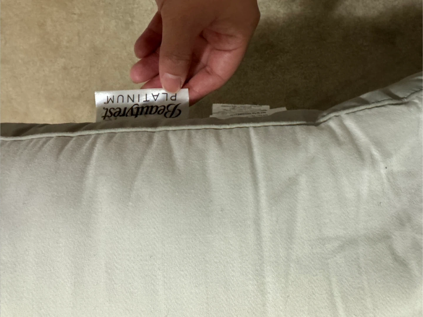 Selling a set of two Beautyrest Platinum pillows. They're in great condition and ready for a new home! They offer comfortable support for a good night's sleep