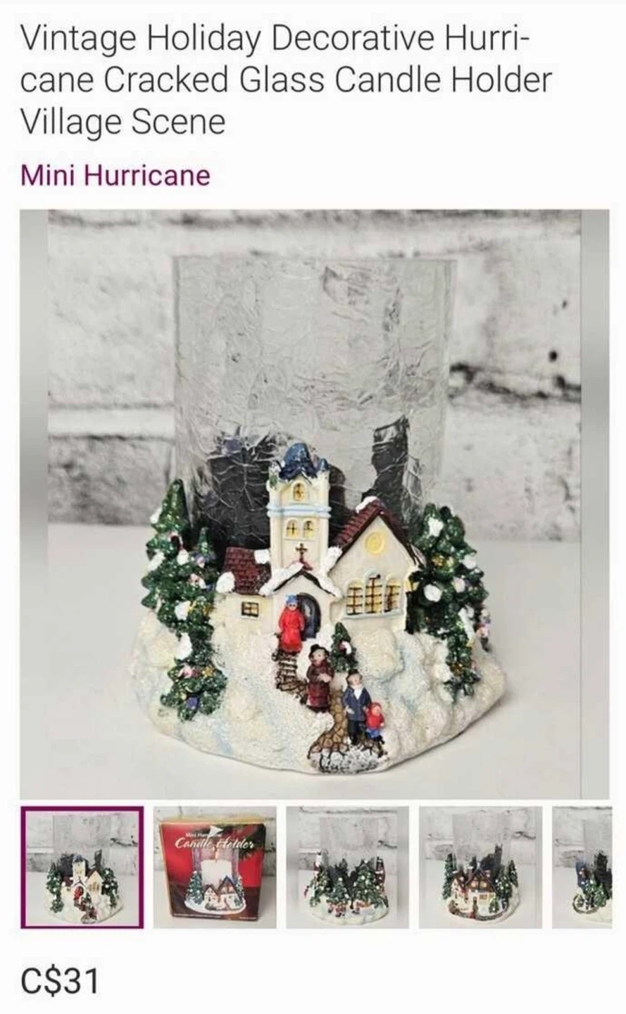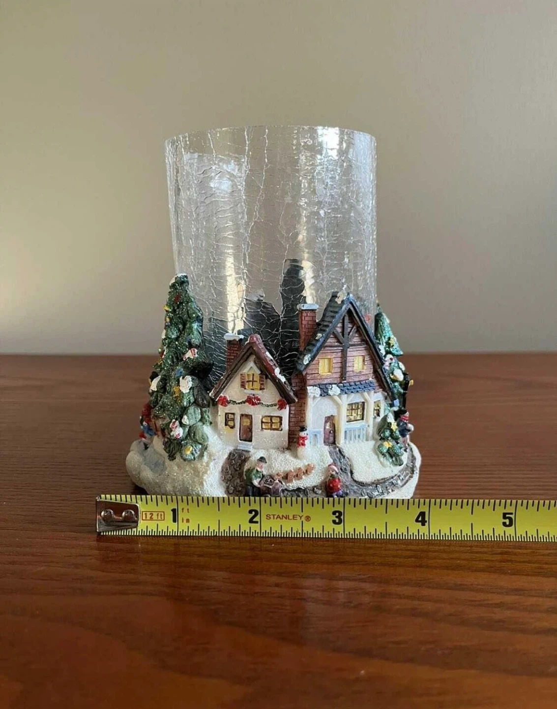 $15 Vintage holiday decorative Hurricane with cracked glass design candle holder.