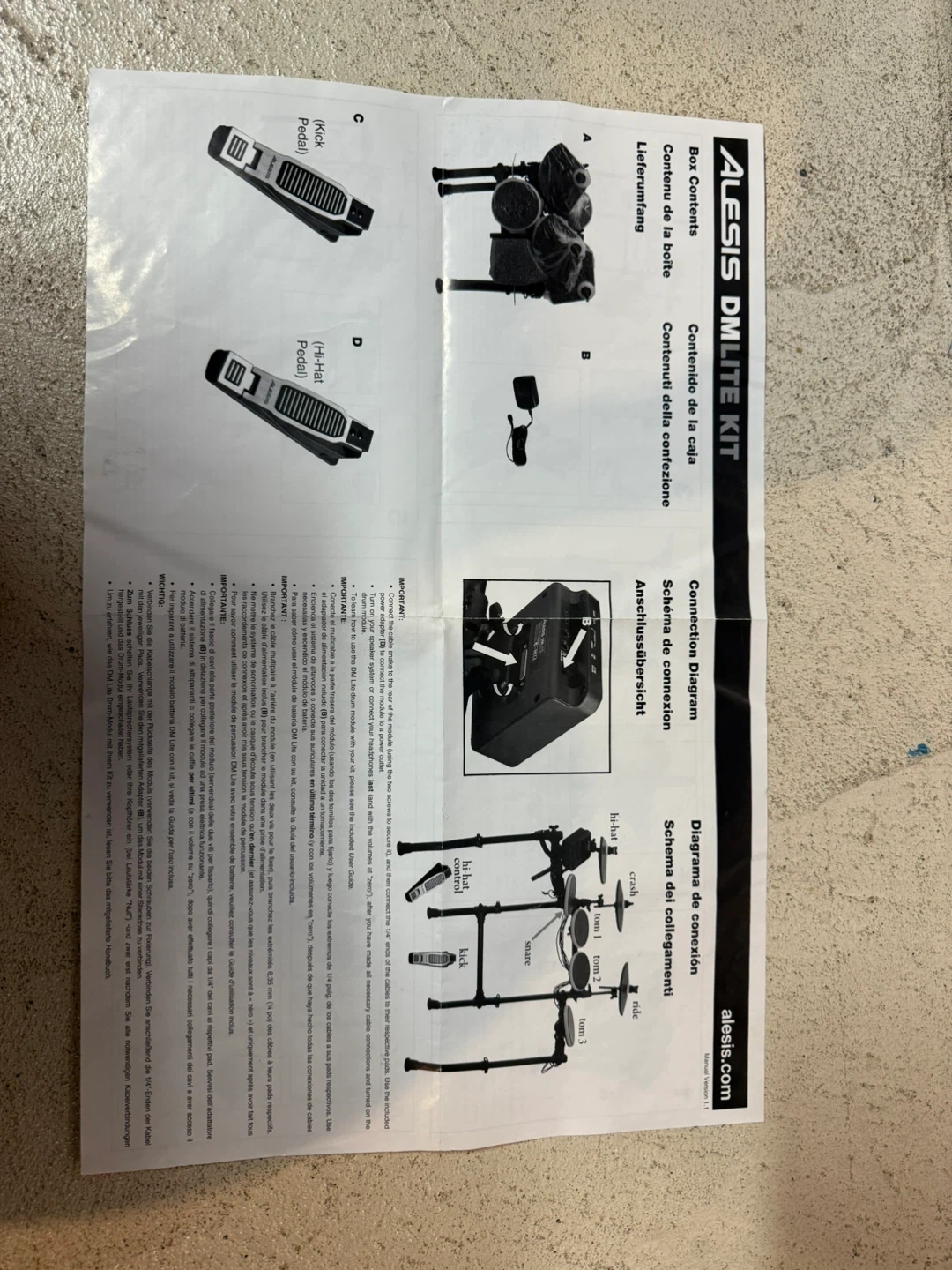 This is an Alesis DM Lite Kit, a complete portable electronic drumset with a folding rack. It includes drum pads, cymbals, pedals, and a drum coach feature. This kit is great for beginners looking to practice and learn drumming.