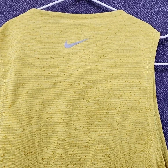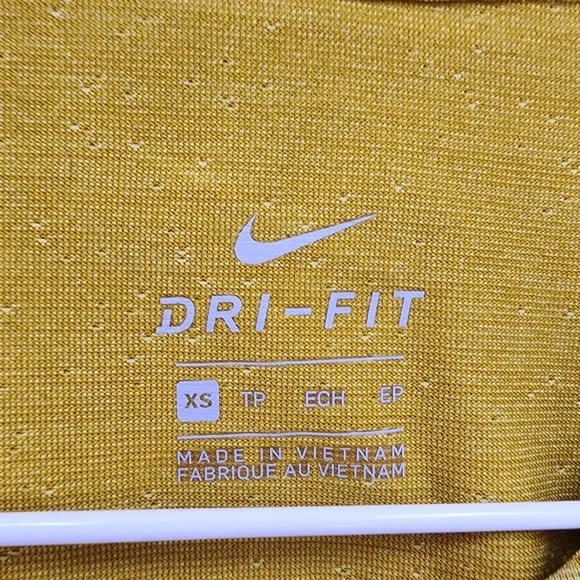 This Nike Dri-FIT tank top is perfect for workouts or casual wear! It's a slim fit and comes in a vibrant yellow colour. The size is XS. The tag indicates that Nike DRY fabrics move sweat away from your skin for quicker evaporation, helping you stay dry, comfortable and focused on the task at hand, thanks to Dri-FIT technology